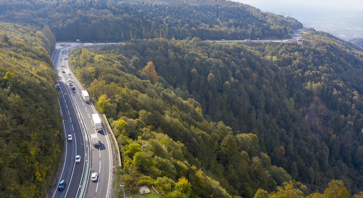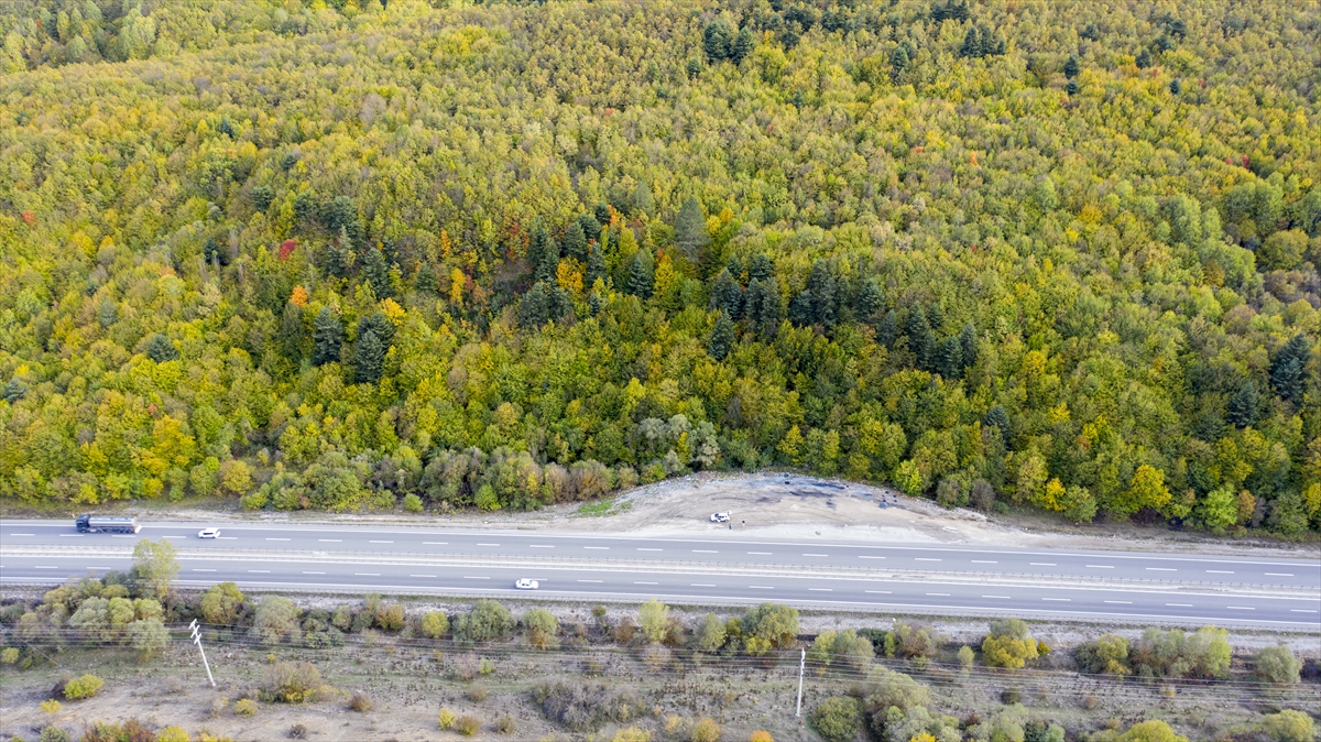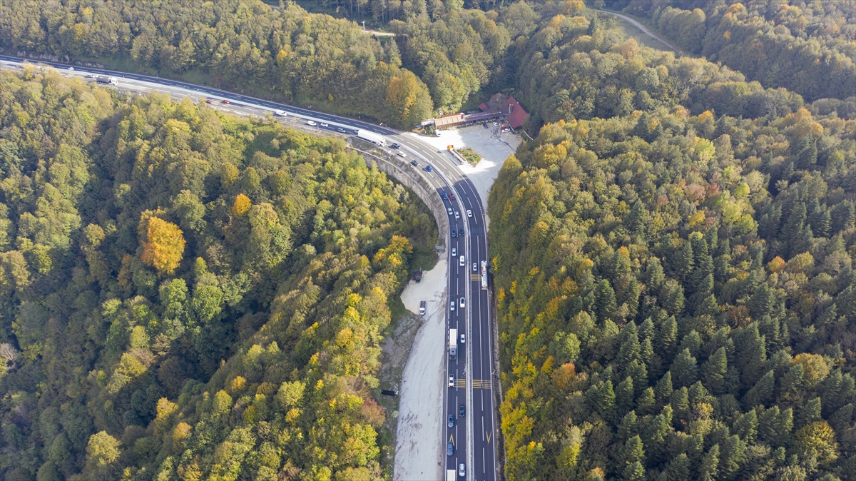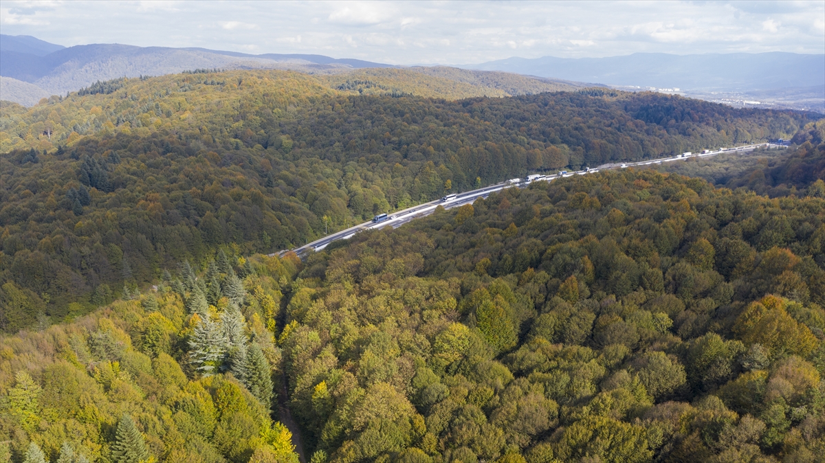 İstanbul ve Ankara arasındaki en önemli geçiş güzergahlarından D-100 kara yolunun Yeniçağa kesiminden geçen sürücüler, sonbahar renkleri arasında yolculuk yapıyor.