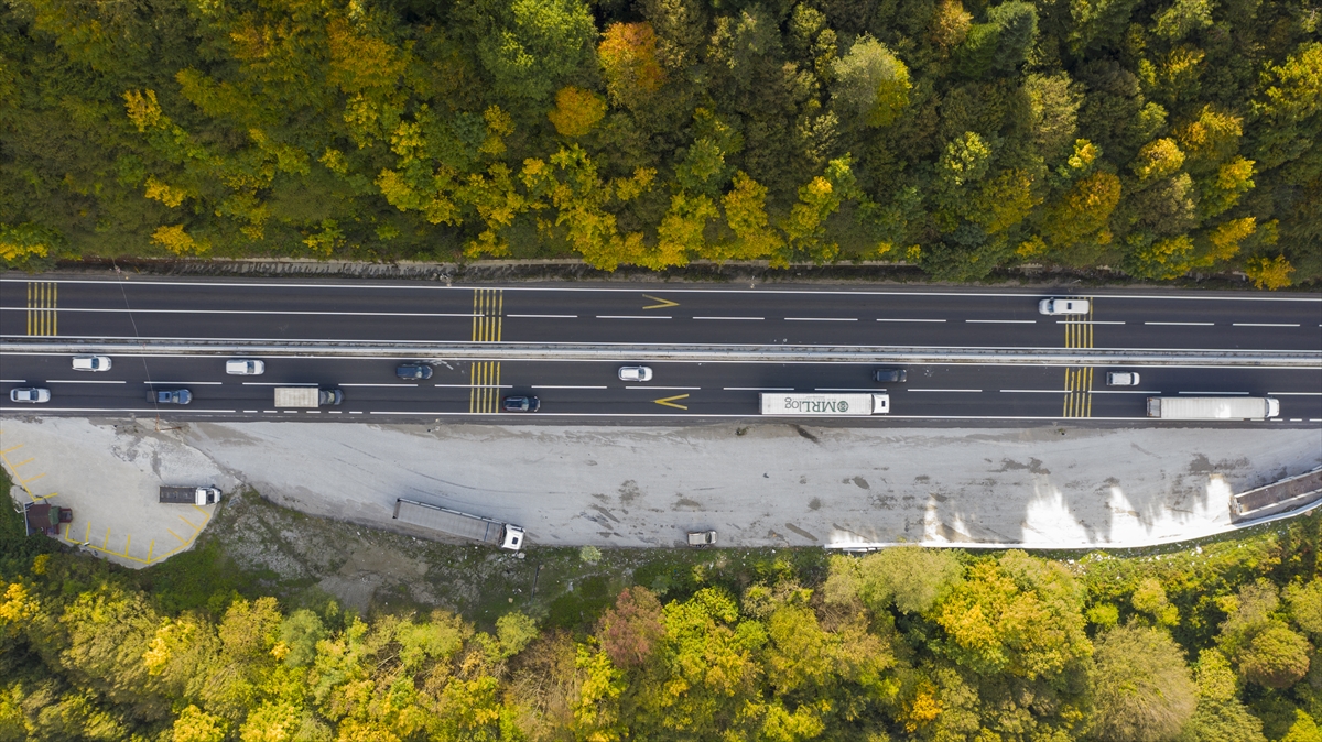 Sürücüler, kara yolunun Bolu kesiminde doğanın oluşturduğu manzara eşliğinde yolculuk yapıyor.