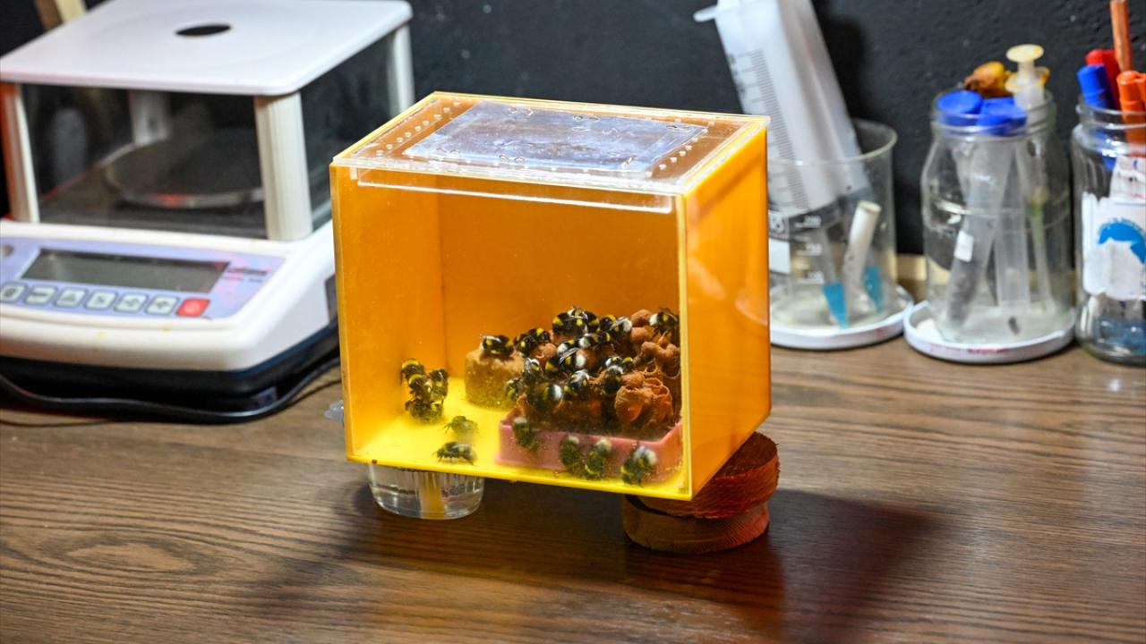 Arıların bakımını yapan doktora öğrencisi Anıl Akçay, "Arıların yetiştirilmesinin belli zorlukları var. Sürekli takip gerektiren bir iş. Besin kaynakları polenlerdir. Bunun yanında nektar yerine geçecek şurup takviyesi yapıyoruz. Kolonilerin büyümesi ve gelişmesini sağlıyoruz. Tüm aşamalarını titizlikle takip ediyoruz." diye konuştu.