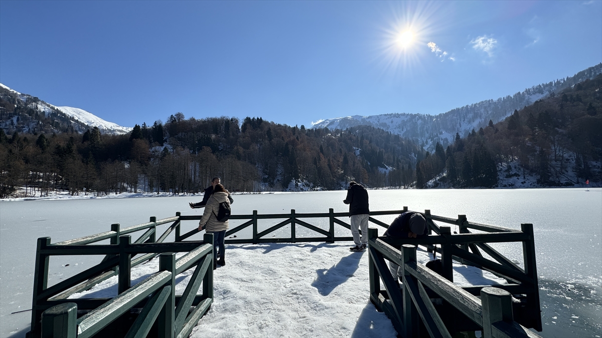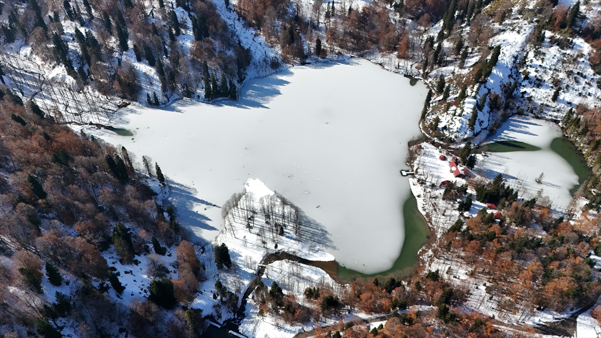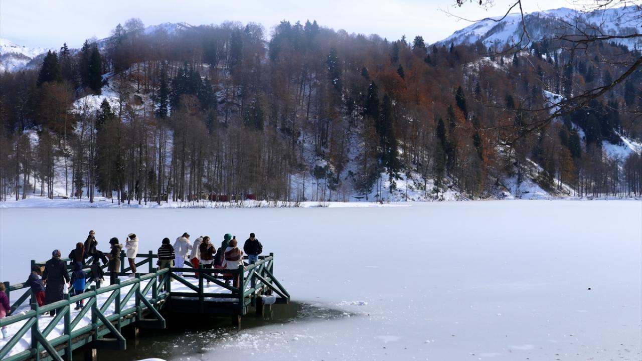 Artvin'in en önemli turizm merkezlerinden Borçka Karagöl Tabiat Parkı, ziyaretçilerini yüzeyi buz tutmuş gölü ve sonbahar renklerinin hakim olduğu karla kaplı ormanlarıyla karşılıyor.