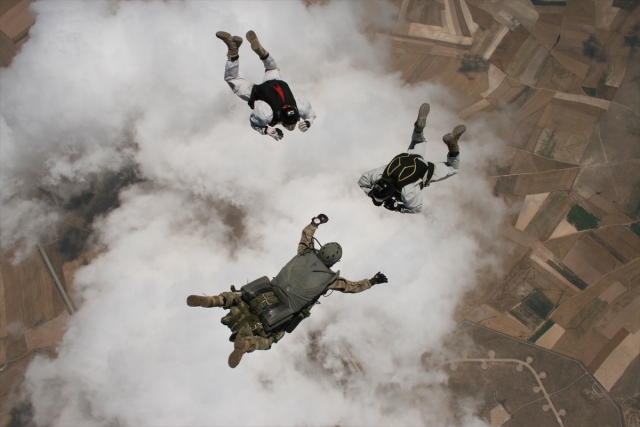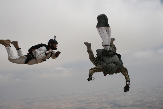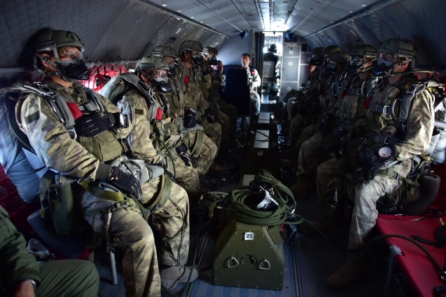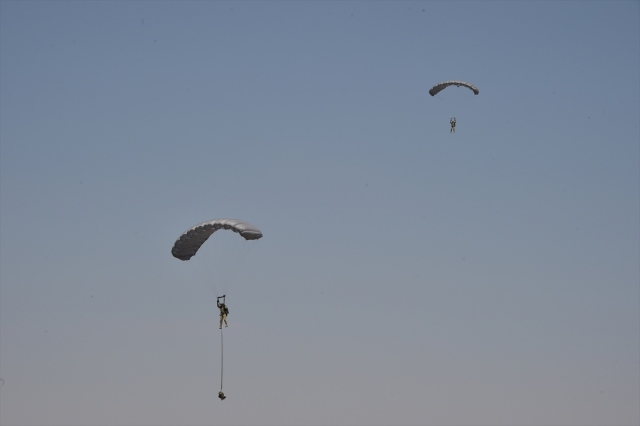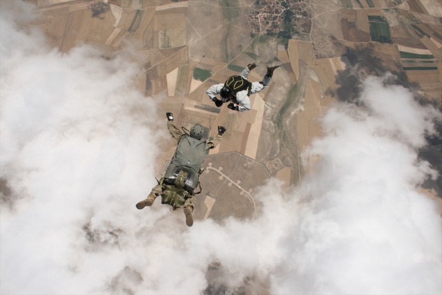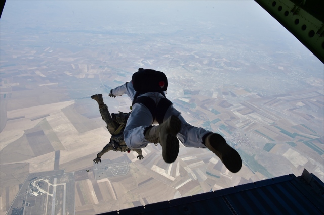Bordo berelilerin gece ve gündüz tam teçhizatlı paraşüt eğitimi göz doldurdu. Özel Kuvvetler Komutanlığı personeli, rutin eğitimleri kapsamında Eskişehir`in Sivrihisar ilçesinde paraşüt atlayışları gerçekleştirdi. Bordo bereliler, atlayış öncesi paraşütlerini ve malzemelerini hazırladı. Son kontrollerin ardından Özel Kuvvetler Komutanlığı personelini taşıyan uçak havalandı. Uçağın, hedeflenen irtifayı kazanmasının ardından bordo bereliler, teker teker uçaktan ayrıldı. Tam teçhizatlı yapılan paraşüt atlayışları sadece gündüz değil, gece de devam etti. Bordo bereliler paraşüt eğitimlerini başarıyla tamamladı.