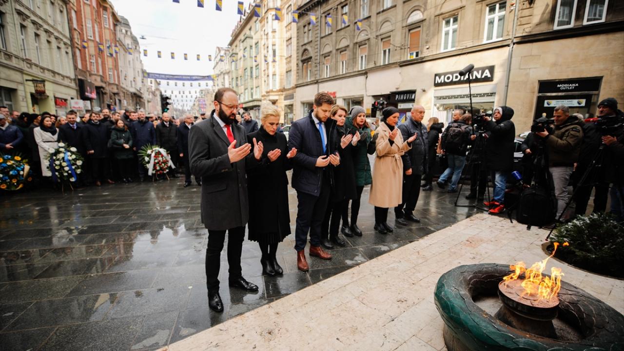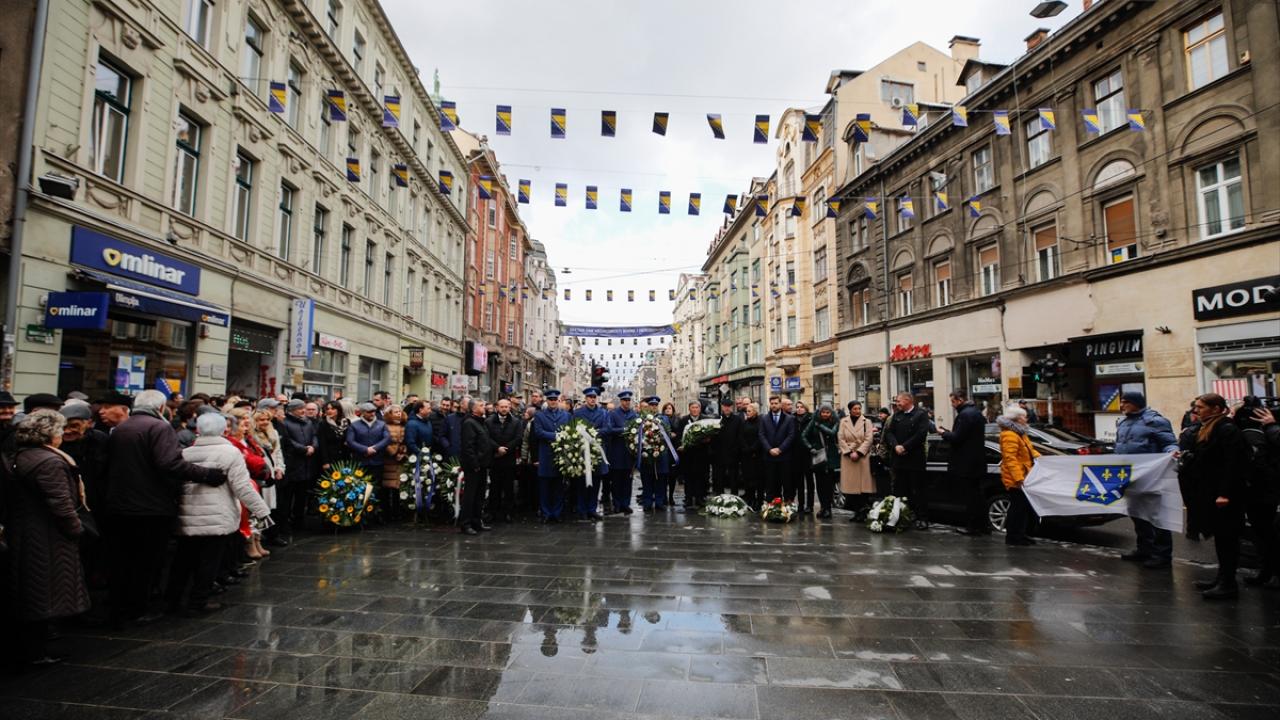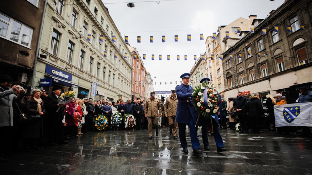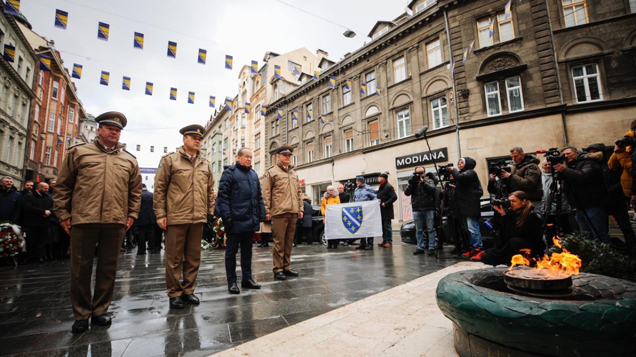 Saraybosna`daki törenler, 1992-1995 savaşında Saraybosna’nın savunulduğu Hum tepesindeki bayrak töreniyle başladı. İkinci Dünya Savaşı sırasında şehri savunurken hayatlarını kaybeden askerler için yapılan "Sönmeyen Ateş Anıtı"nda devam etti.