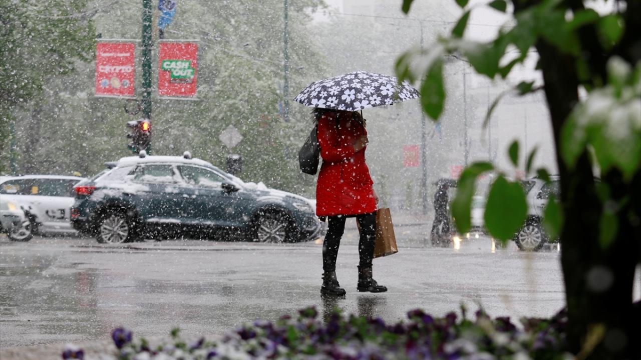 Bosna Hersek'in başkenti Saraybosna'da nisanda kar yağdı
