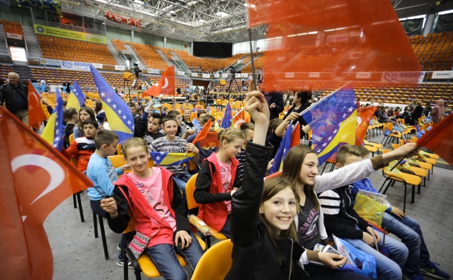 Yunus Emre Enstitüsü tarafından Bosna Hersek'te bu yıl beşincisi düzenlenen Çocuk Şenliği, ülke genelinde Türkçe öğrenen binlerce çocuğu bir araya getiriyor. Ülkenin orta kesimlerindeki Zenica şehrinde bugün düzenlenen etkinliğe katılmak üzere 7 ayrı kantondaki 150 okuldan gelen öğrenciler ve Türkiye'den gelen konuklar geri sayıma başladı. Etkinliğe ev sahipliği yapan Zenica Arena renkli görüntülere sahne oldu.