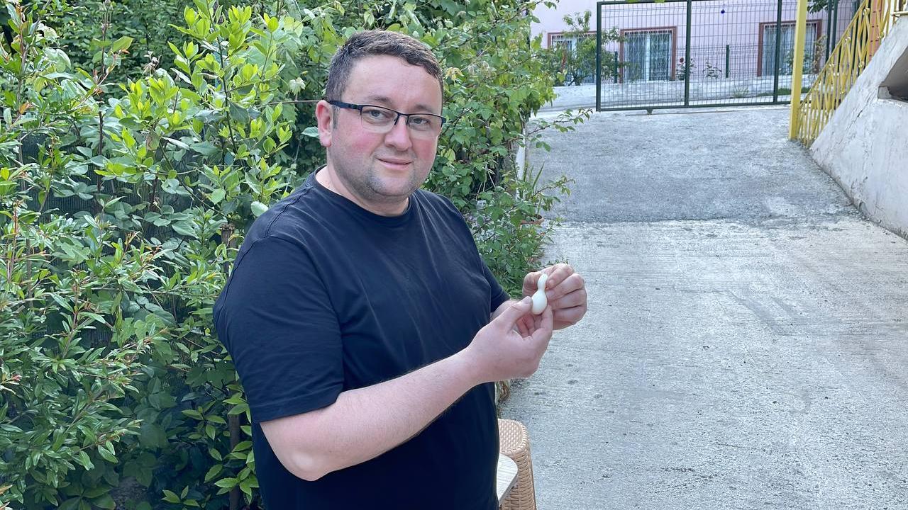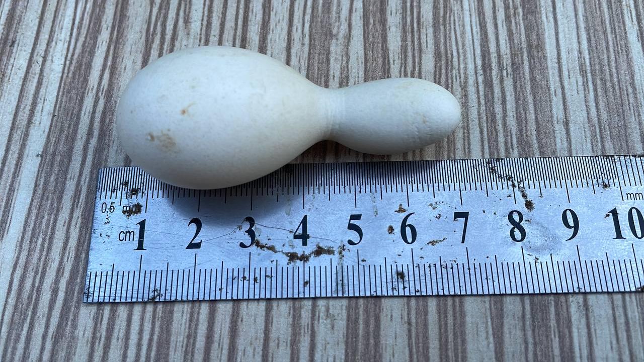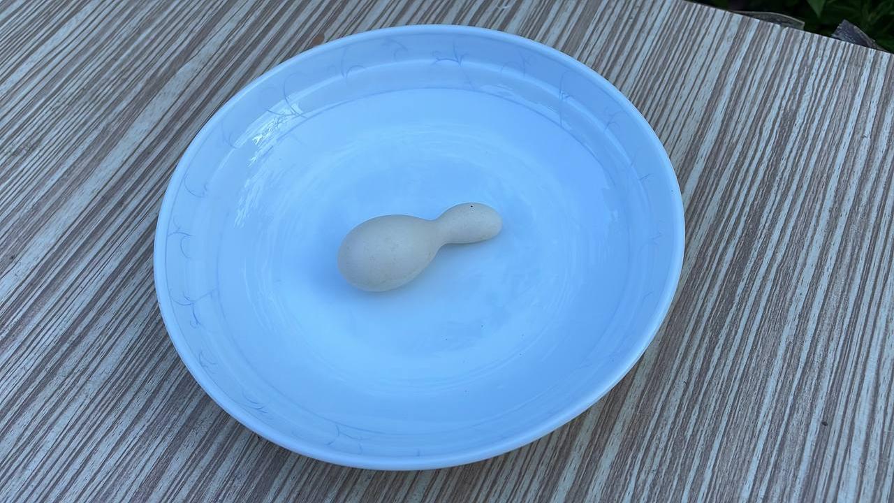 Yaklaşık 7 santimetre uzunluğunda bovling labutuna benzeyen yumurtayı görünce şaşıran Yıldırım, yumurtayı buzdolabına koyarak hatıra olarak saklamaya başladı.