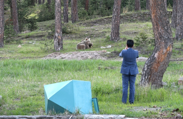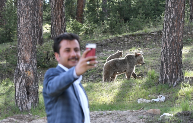 Kars'ın Sarıkamış ilçesinde aç kalan bozayılar, Cıbıltepe Kayak Merkezi'nin bulunduğu oteller bölgesine indi. Vatandaşlar çevrede dolaşan boz ayılar ile yavruları gözükecek şekilde cep telefonları ile öz çekim yaptı.