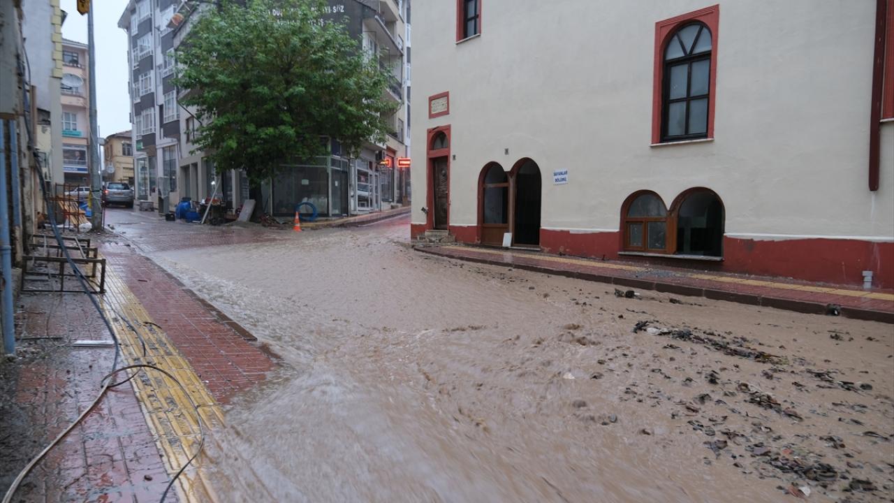 Şiddetli yağış nedeniyle ilçe merkezinden geçen Ezine Çayı`ndaki su seviyesi ise yükselmeye başladı.