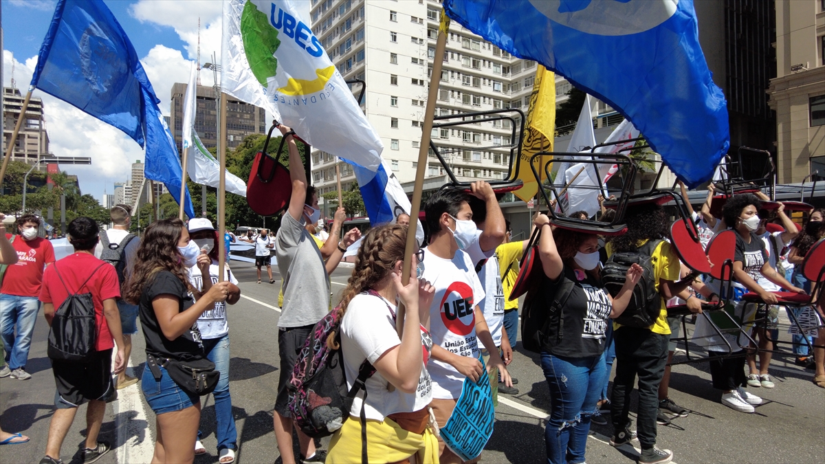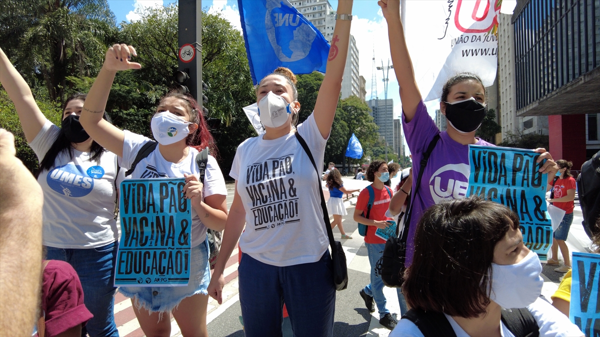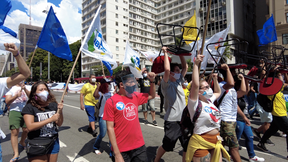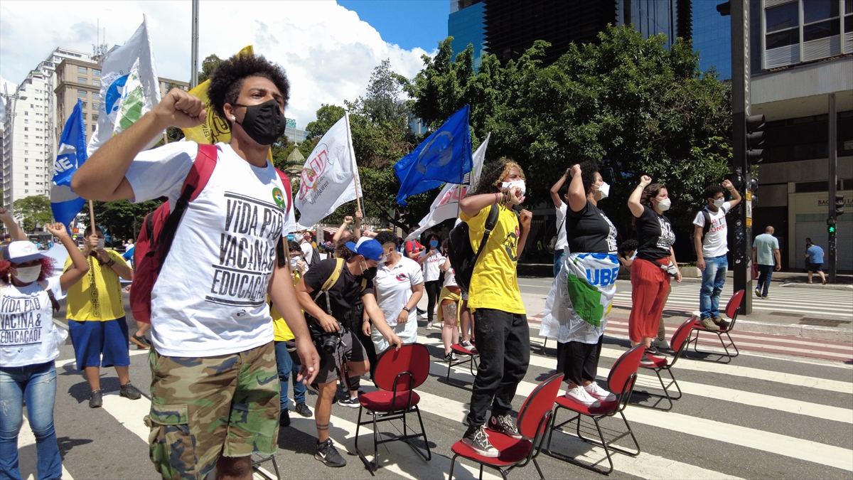 Brezilya'nın Sao Paulo kentinde bir araya gelen bir grup gösterici, Devlet Başkanı Bolsonaro'nun yeni tip koronavirüs salgını ile mücadelede yetersiz kaldığı gerekçesiyle protesto gösterisi düzenledi.