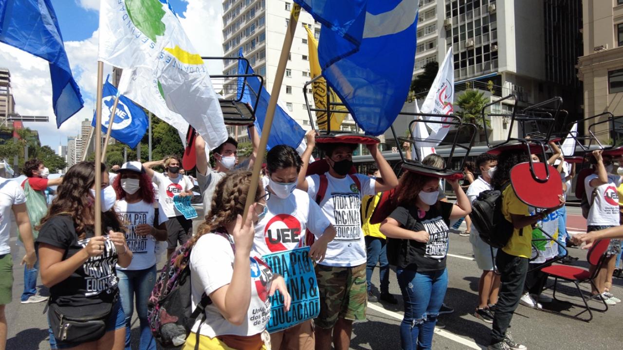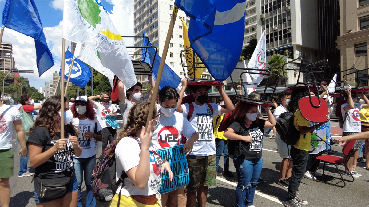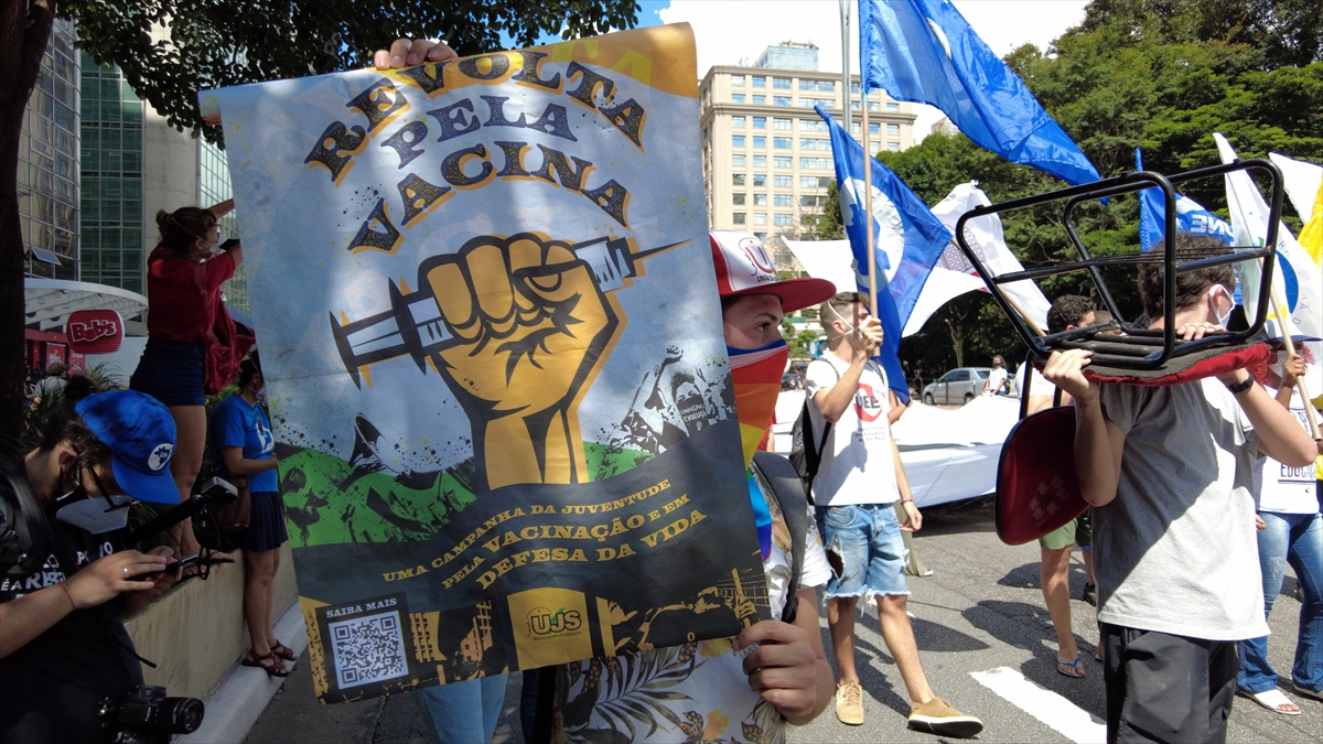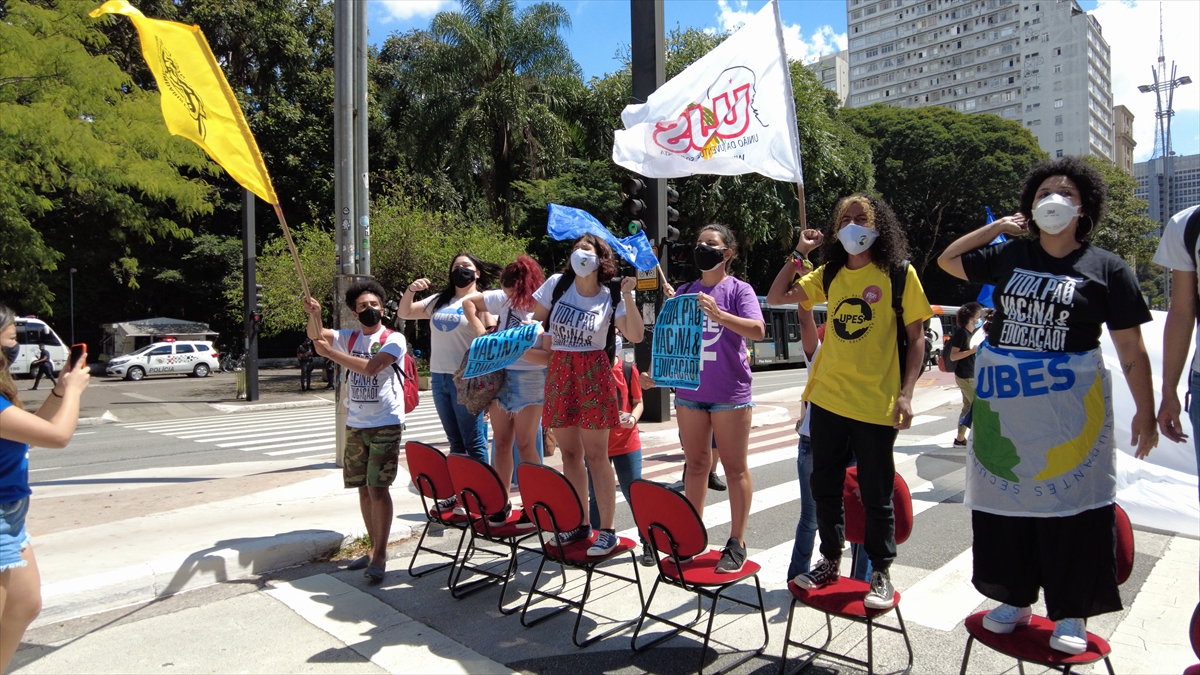 Brezilya'nın Sao Paulo kentinde bir araya gelen bir grup gösterici, Devlet Başkanı Bolsonaro'nun yeni tip koronavirüs salgını ile mücadelede yetersiz kaldığı gerekçesiyle protesto gösterisi düzenledi.