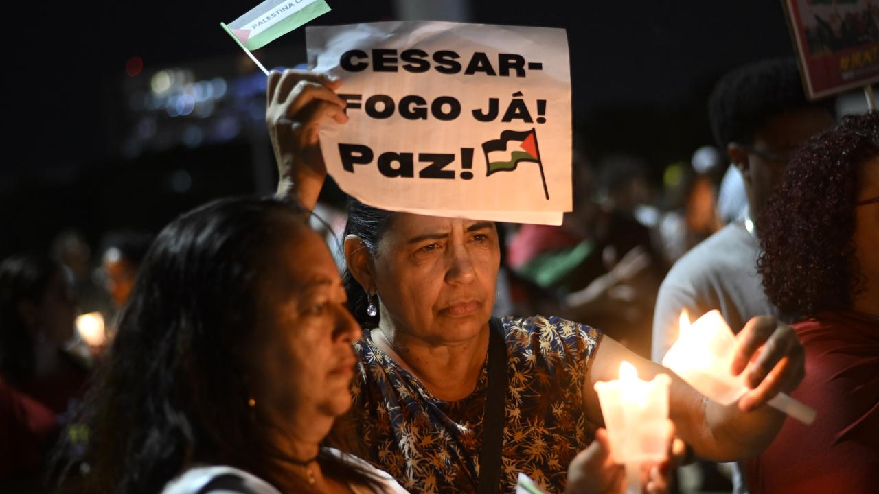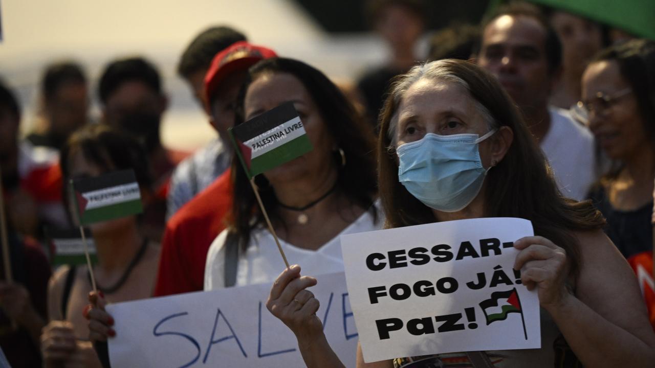 Brezilya'nın başkenti Brasilia'da, Filistin halkı ile dayanışma gösterisi düzenlendi. Göstericiler İsrail'in saldırılarına karşı Filistin'e destek pankartları ve bayraklar taşıdı.