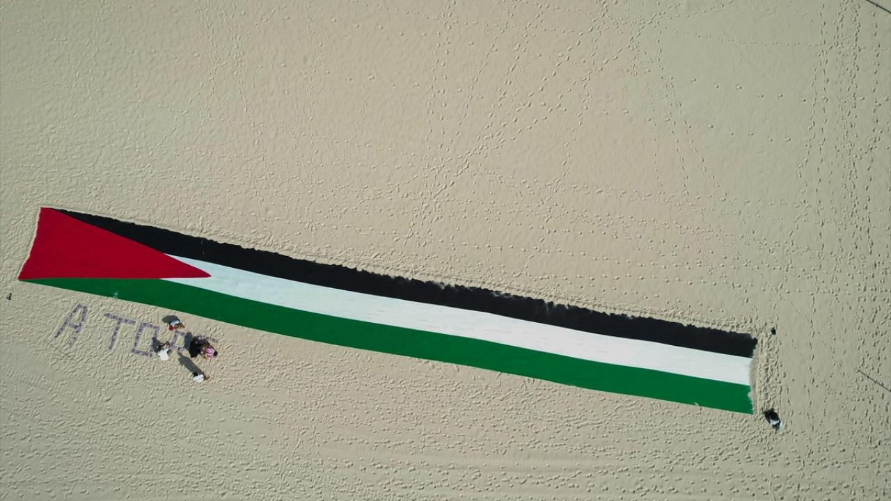 Brezilya'nın Rio de Janeiro kentinde 18-19 Kasım tarihleri arasında gerçekleşecek olan G20 zirvesi öncesinde vatandaşlar ve turistler Filistin'e destek göstermek amacıyla Copacabana plajında dev bir Filistin Bayrağı açtı.