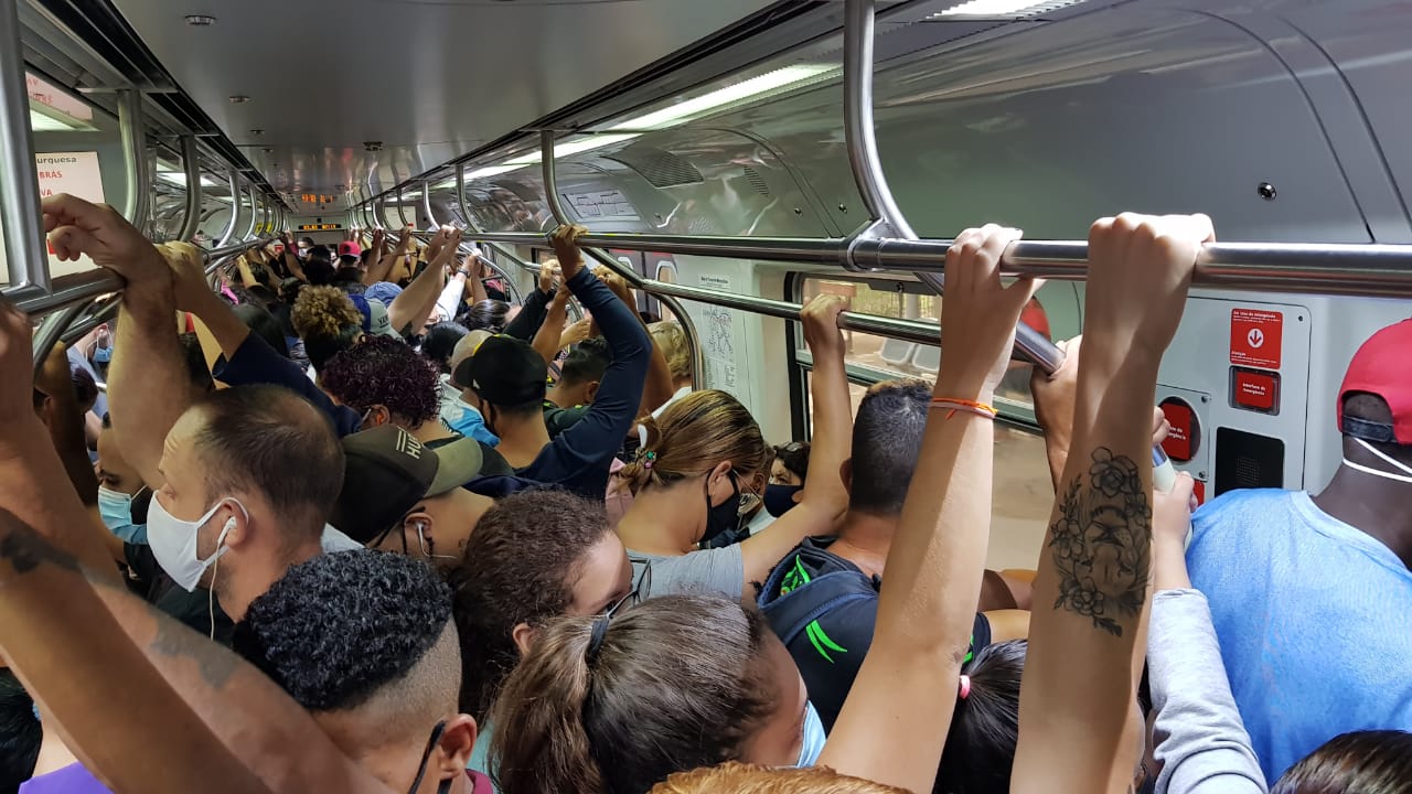 Brezilya'da metro istasyonunda yoğun kalabalık