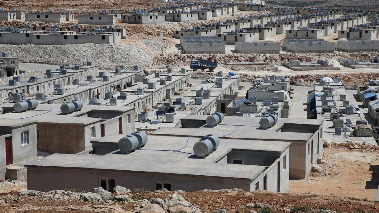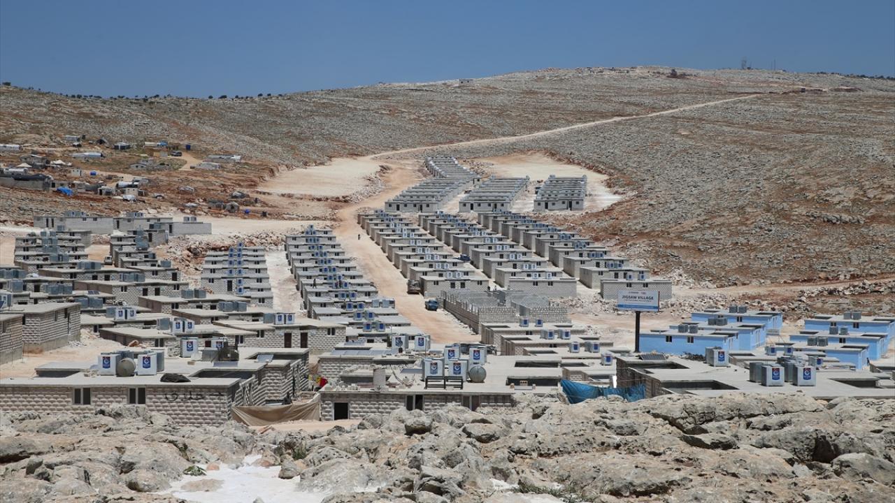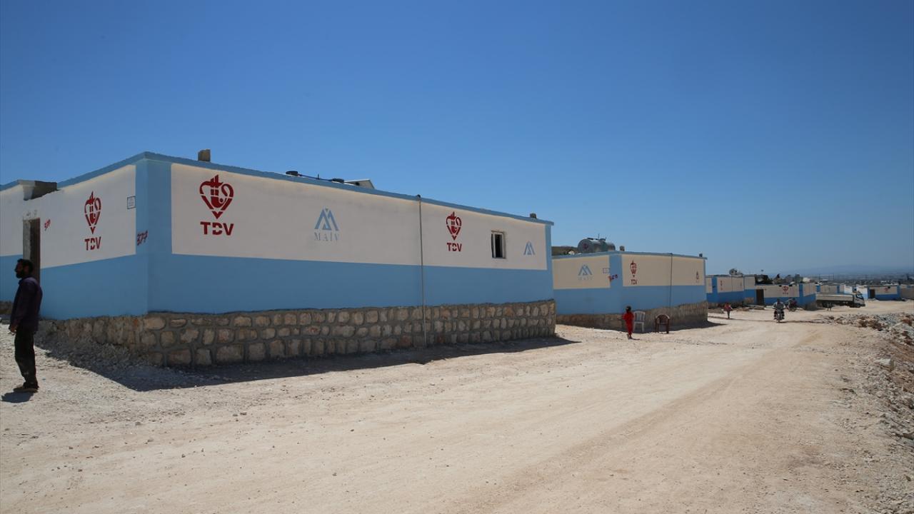 Suriye'deki savaş nedeniyle çeşitli bölgelerden kaçıp Türkiye sınırına yakın noktalara gelen Suriyeli aileler, İdlib'de yapımı tamamlanan briket evlere yerleştirildi.