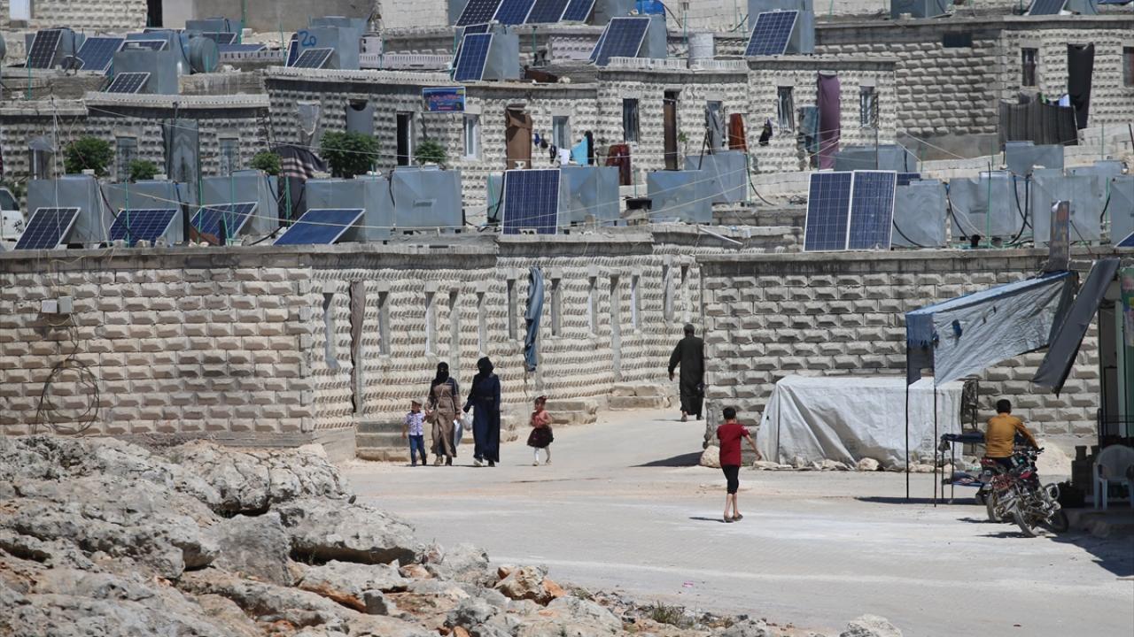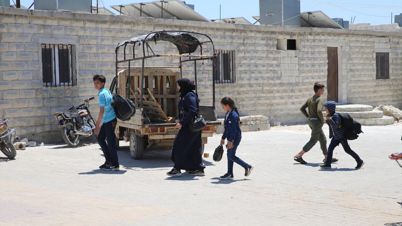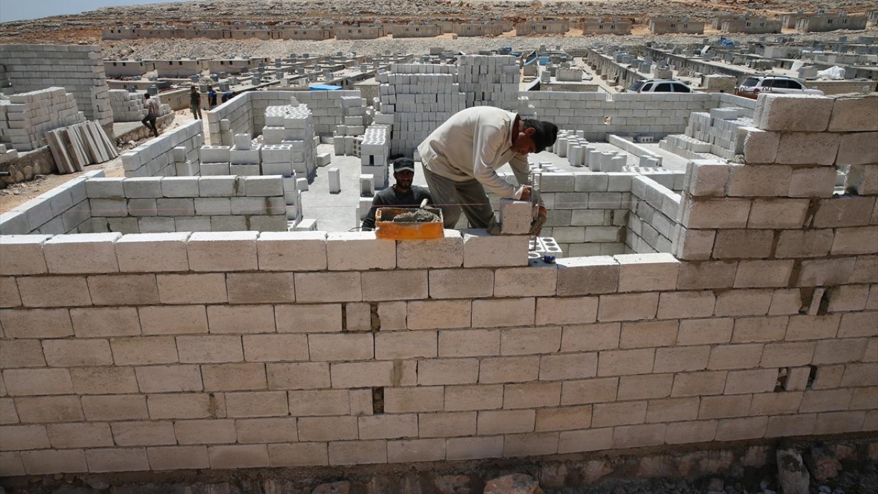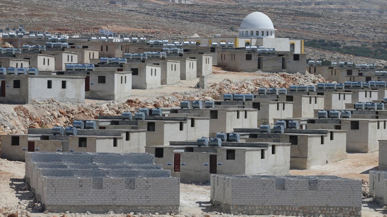 Suriye'deki savaş nedeniyle çeşitli bölgelerden kaçıp Türkiye sınırına yakın noktalara gelen Suriyeli aileler, İdlib'de yapımı tamamlanan briket evlere yerleştirildi.