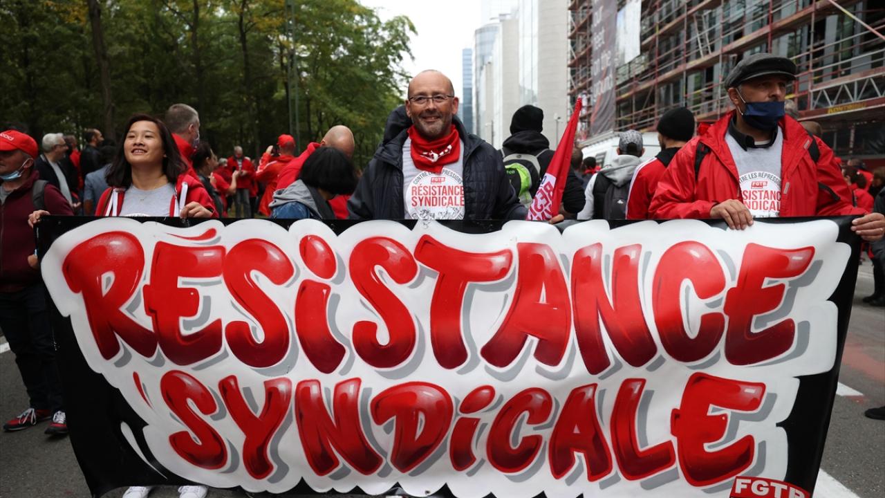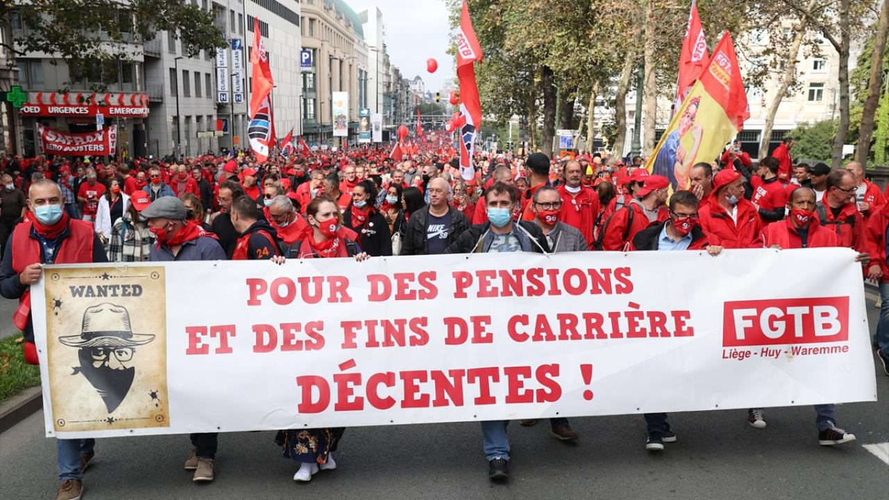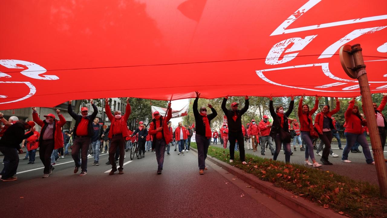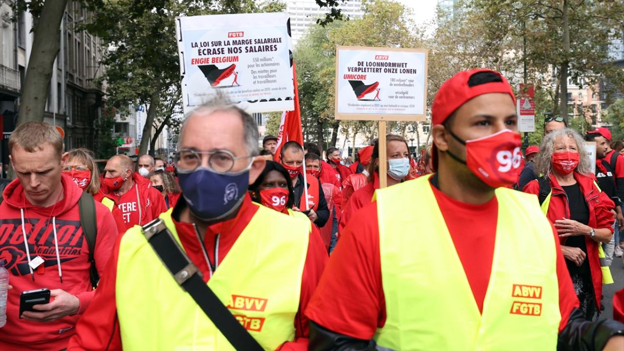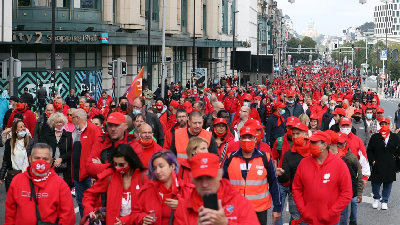 Belçika'nın başkenti Brüksel'de Kuzey (Gare du Nord) tren istasyonu önünde toplanan binlerce işçi, ücretlerinin artırılmasına sınır koyan yasayı protesto etmek için yürüyüş düzenledi.