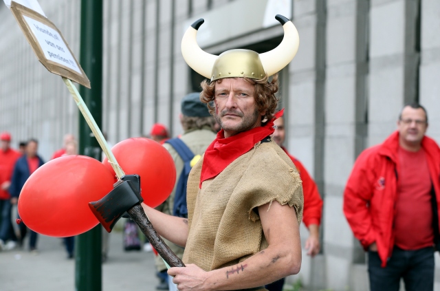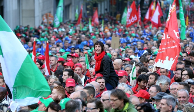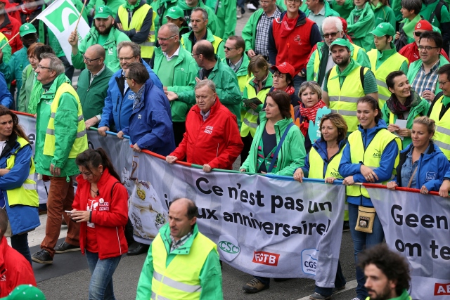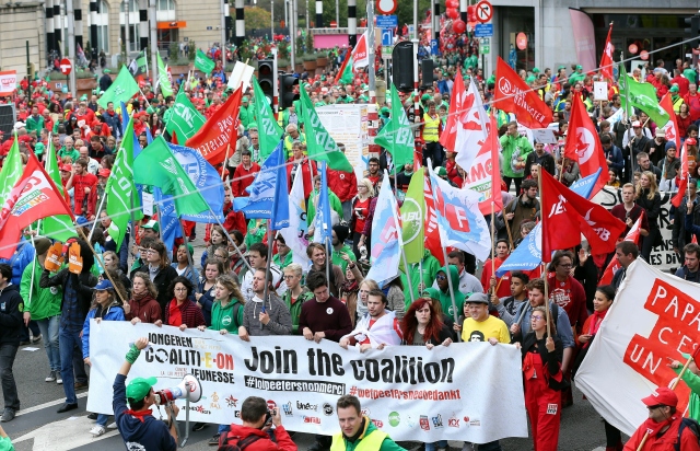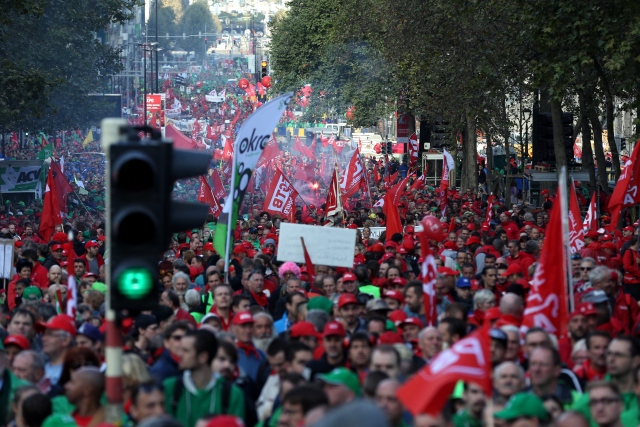 Belçika’nın başkenti Brüksel’de çeşitli işçi sendikaları, merkez sağ hükümetin kemer sıkma politikalarını protesto etmeye başladı.