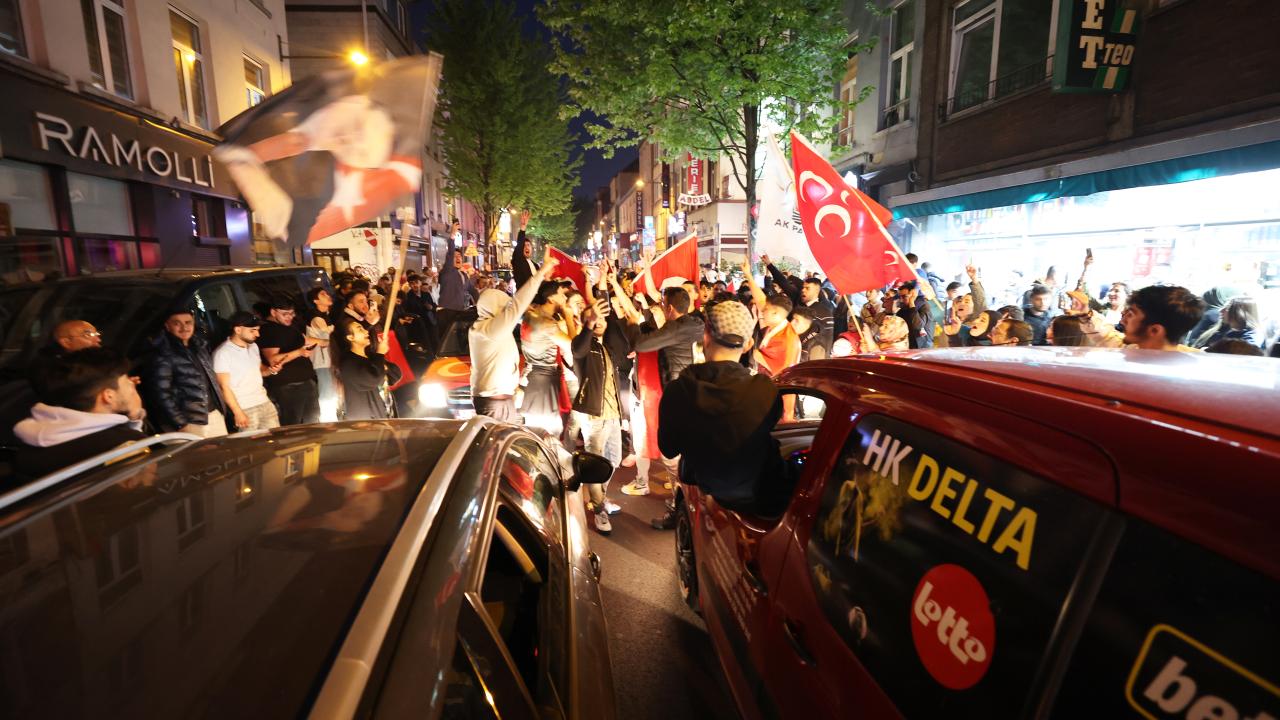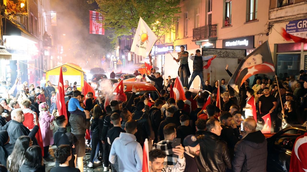 Türkiye'de yapılan Cumhurbaşkanı ve 28. Dönem Milletvekili Genel Seçimlerinin heyecanı Belçika'nın başkenti Brüksel'de yaşayan Türklere yansıdı. Brüksel'de Türk nüfusun yoğun yaşadığı Schaerbeek semtinde toplanan yüzlerce kişi, Türk bayraklarıyla sokaklara çıktı.