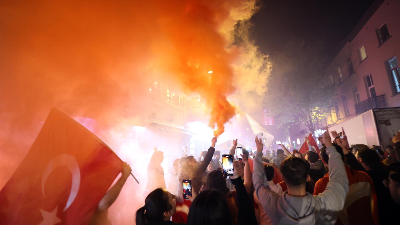 Araçlarıyla korna çalarak sokaklarda tur atan Türkler, Cumhurbaşkanı Recep Tayyip Erdoğan lehine sloganlar attı, tekbir getirdi ve çatapatlar patlattı.