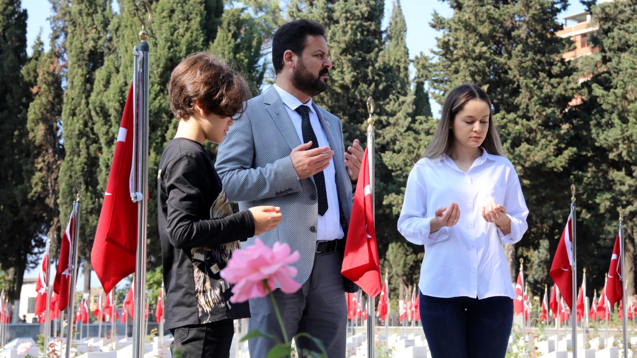 Çocuklarıyla her fırsatta şehitliğe giderek, şehit olan kahraman silah arkadaşlarını da dualarla anan Erduran,