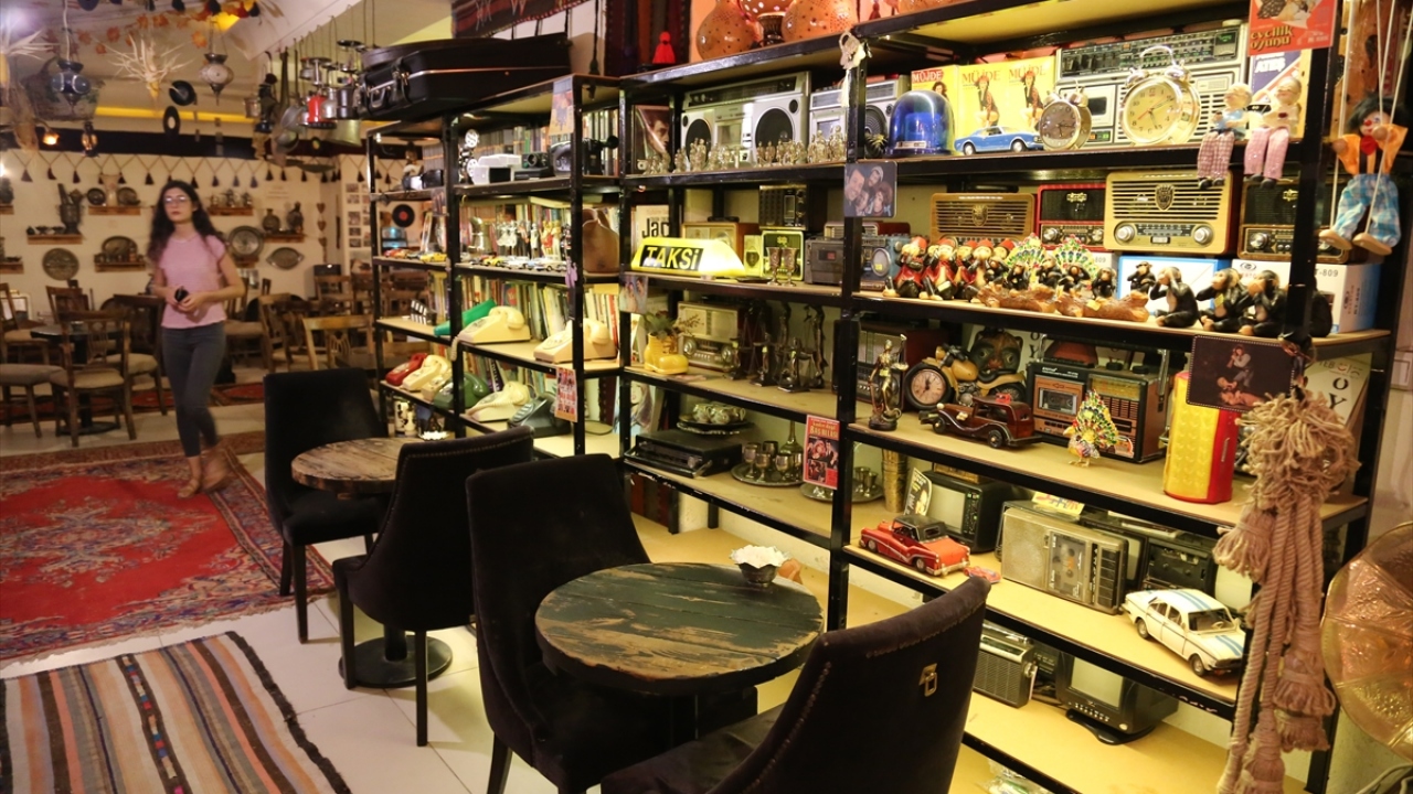 1970, 1980 ve 1990`lı yılların müziğini gramofondan dinlemek, nostaljik bir mekanda çay içerek kitap okumak isteyenlerin uğrak mekanı haline gelen "Antika Kafe"de, geçmişe yolculuk yapılıp, anılar tazelenirken, gençlerin günümüzde kullanılmayan eski eşyaları tanıması da sağlanıyor.