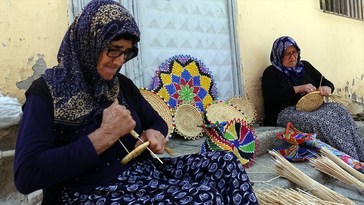 Hatay'da kadınlar, yaşadıkları mahallenin meydanında bir araya gelerek sararmış buğday saplarını örgü sanatıyla işleyerek, şekerlik, ekmeklik, sepet ve süs eşyalarına dönüştürüyor.