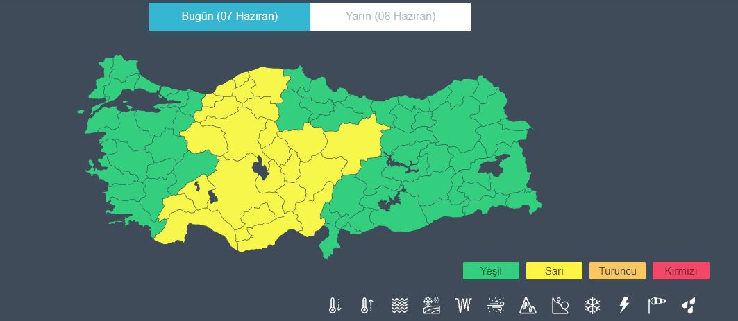 Bugün için aynı zamanda 24 ile gök gürültülü sağanak yağış uyarısı verildi.