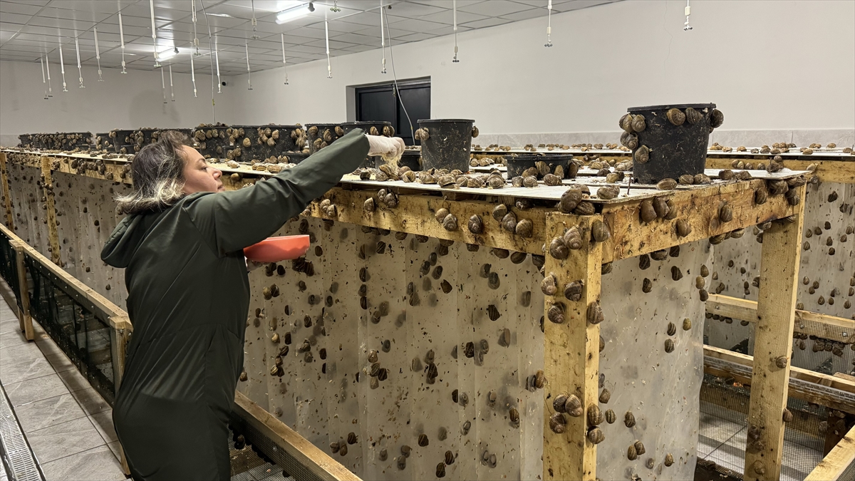 Koçoğlu, her gün geldiği çiftliğinde salyangozların bakım ve yemlemesini yapıyor, yumurta ve salyalarını özenle topluyor.