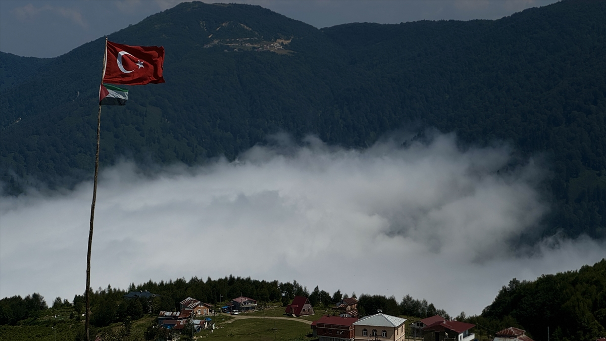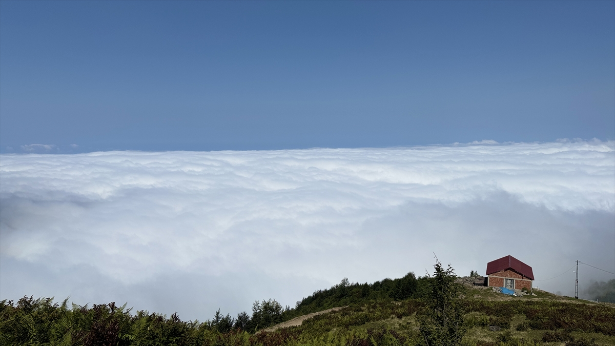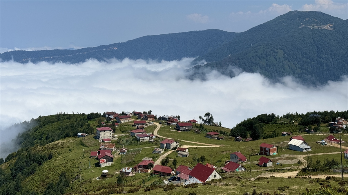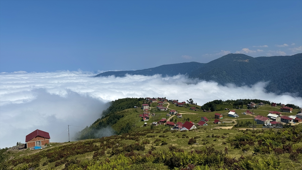 Rize’nin Güneysu ilçesi sınırlarında bulunan 1840 rakımlı Handüzü Yaylası, bulutların üzerindeki görüntüsüyle dikkat çekiyor.