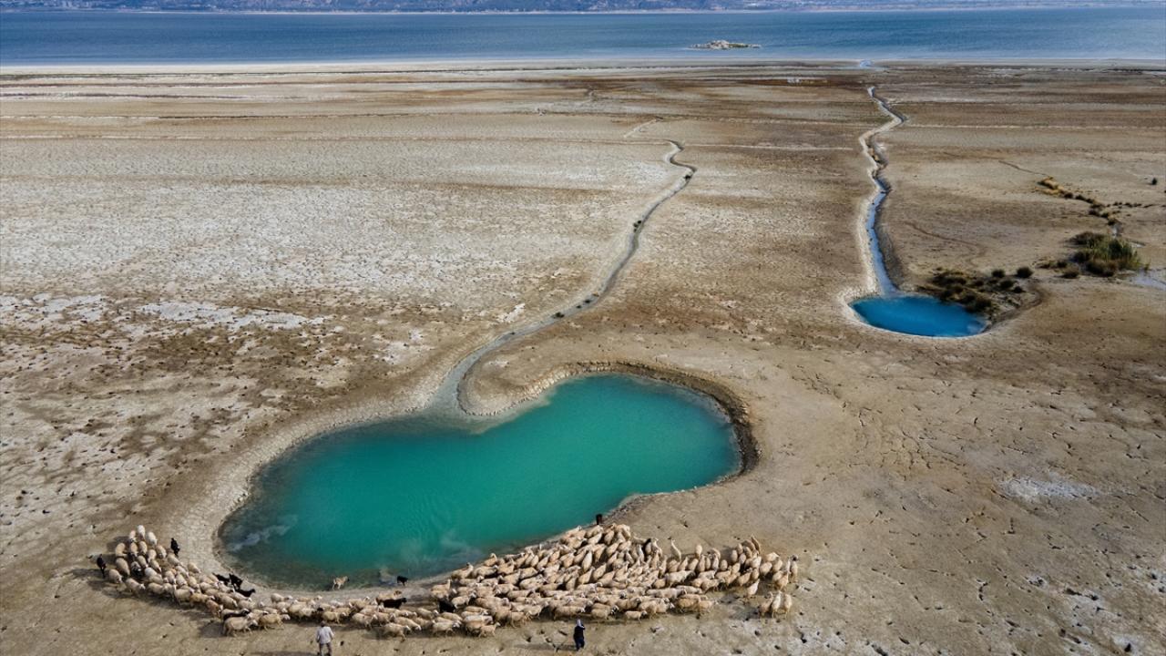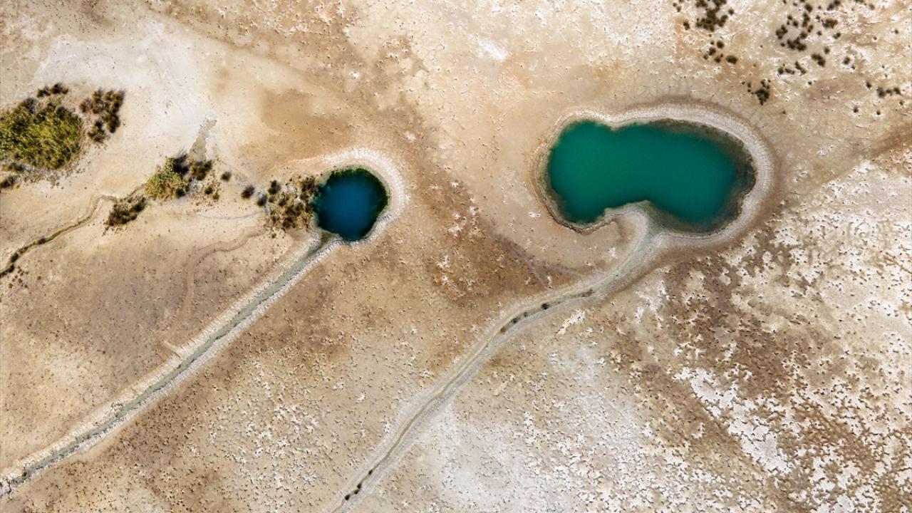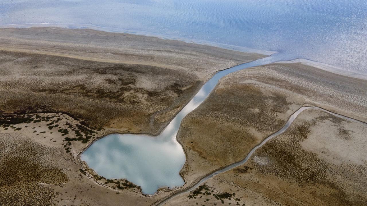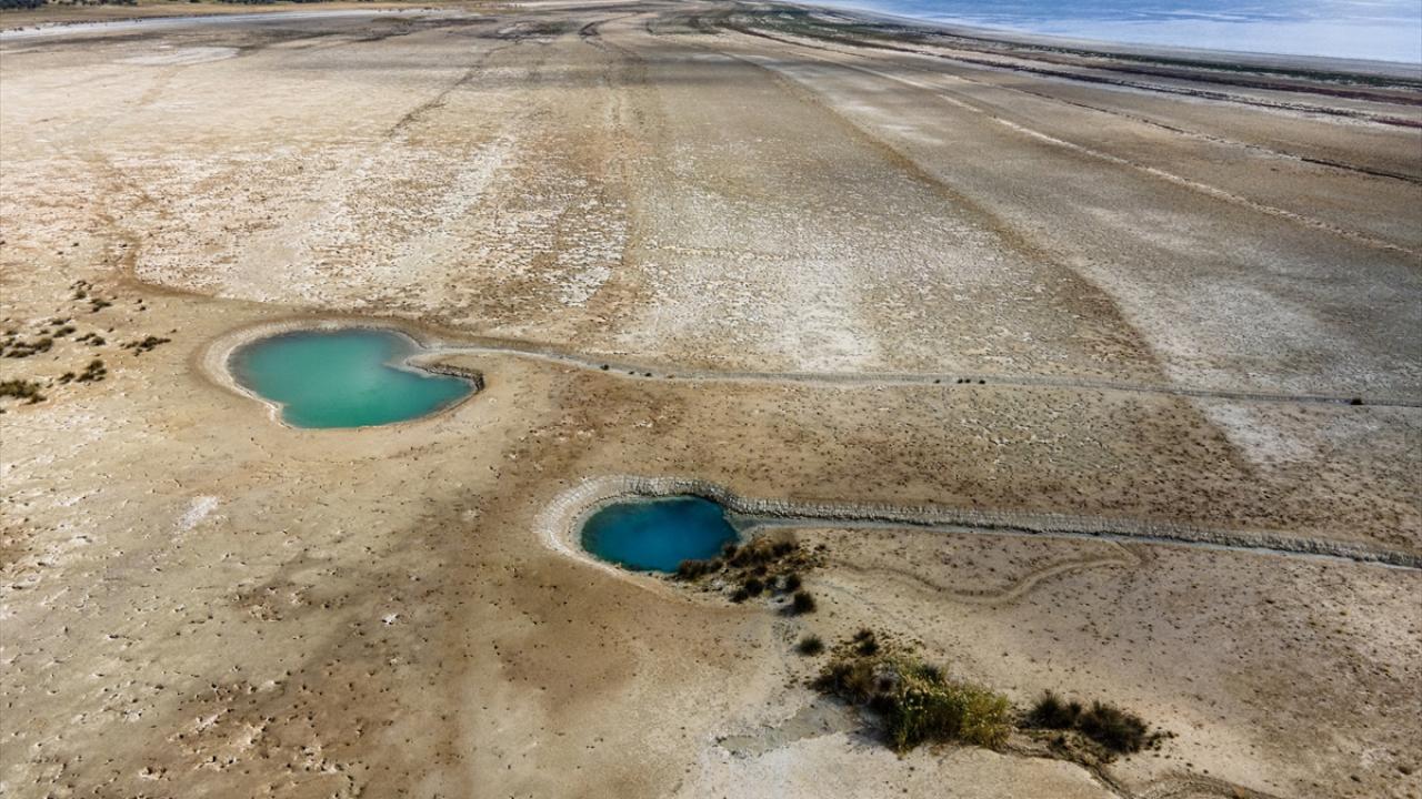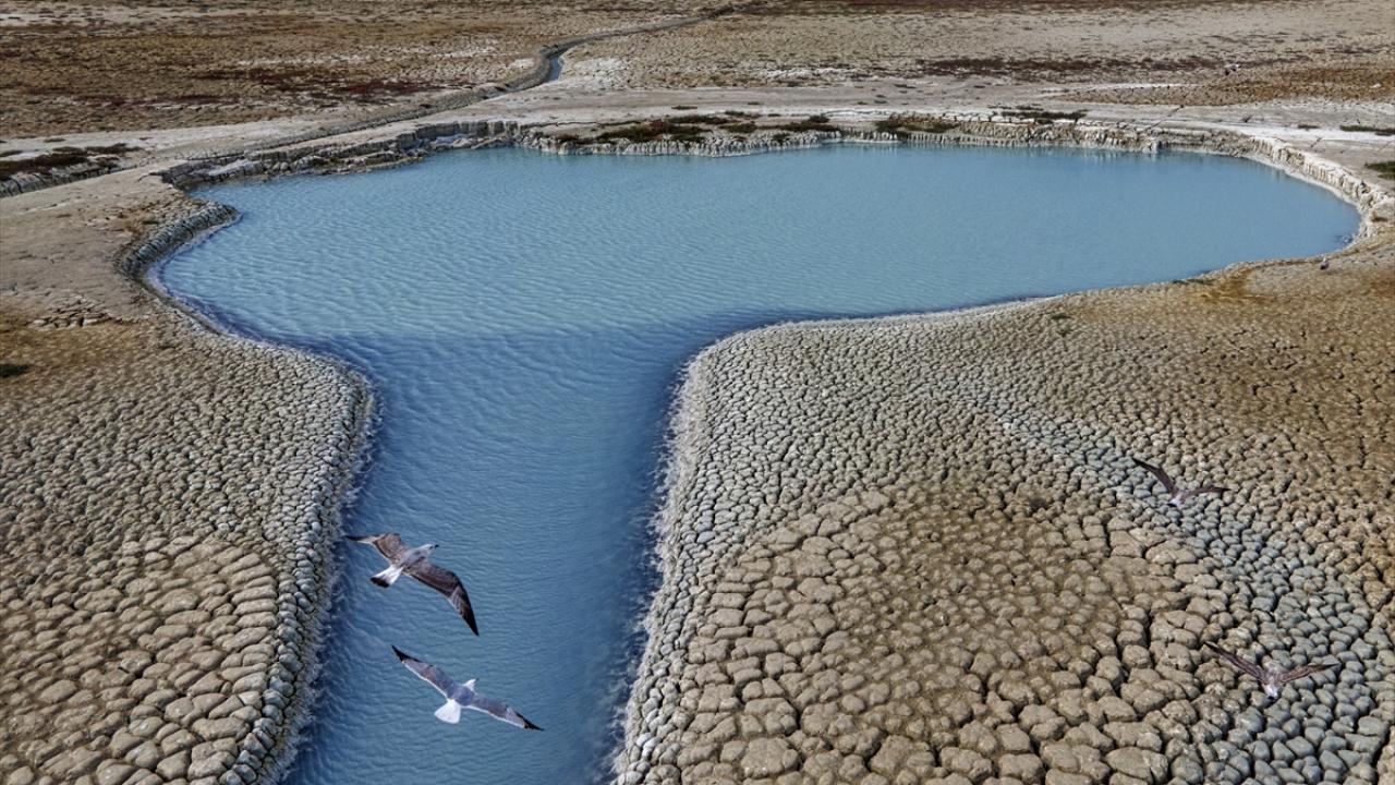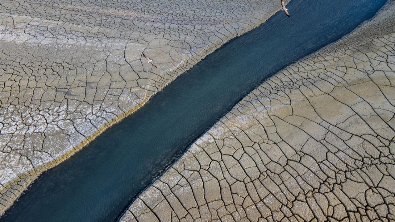 Suların çekildiği alanlarda oluşan çatlaklar kuraklığın boyutlarını gözler önüne sererken bazı bölgelerde derinlik farkı nedeniyle oluşan küçük göletler ve akarsuyu andıran su yolları ise dikkati çekiyor.