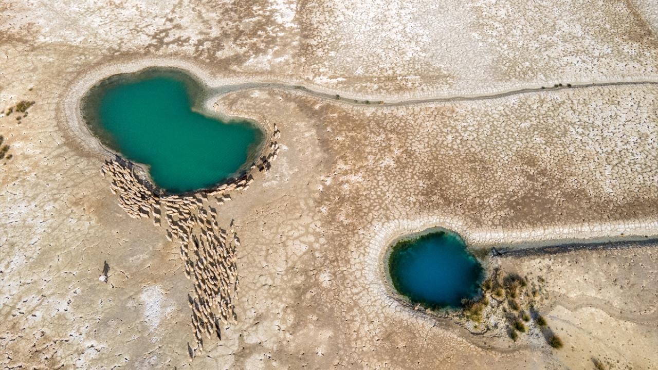 Bölgede hayvancılık yapan bazı vatandaşlar, sürülerini bu küçük göletlere getiriyor.
