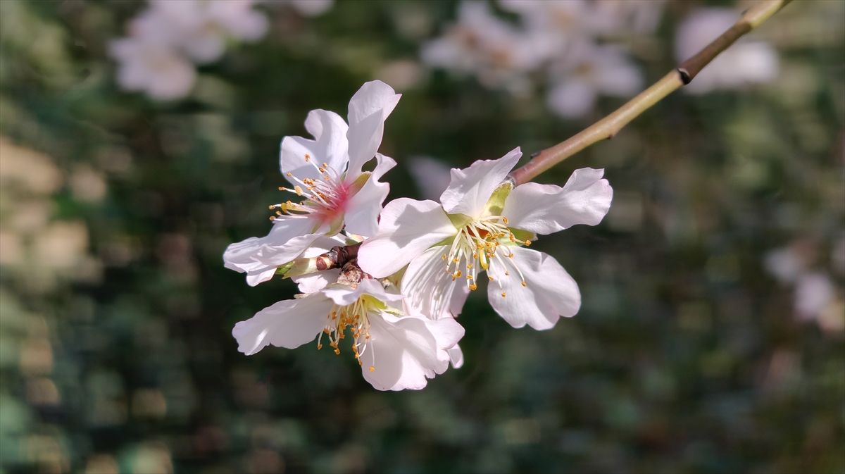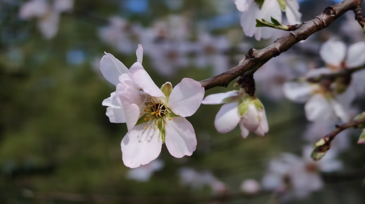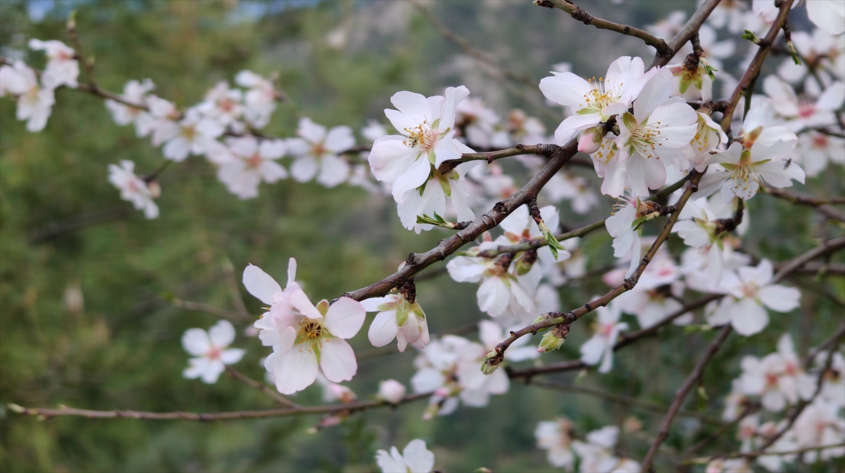 Türkiye`nin büyük bölümünde soğuk hava etkili olurken, ilçede mevsim normallerinin üzerinde seyreden hava sıcaklıkları nedeniyle bazı badem ağaçlarının çiçek açması güzel görüntü oluşturdu.