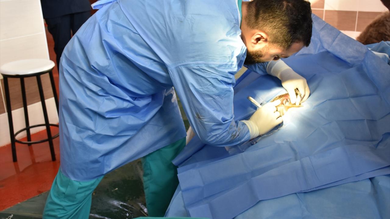 Burdur Mehmet Akif Ersoy Üniversitesi (MAKÜ) Veteriner Fakültesi Hayvan Hastanesi Veteriner Hekimi Dr. Öğr. Üyesi Harun Çınar tarafından muayene edilen ve iki gözünde katarakt olduğu belirlenen deve ameliyat edildi.