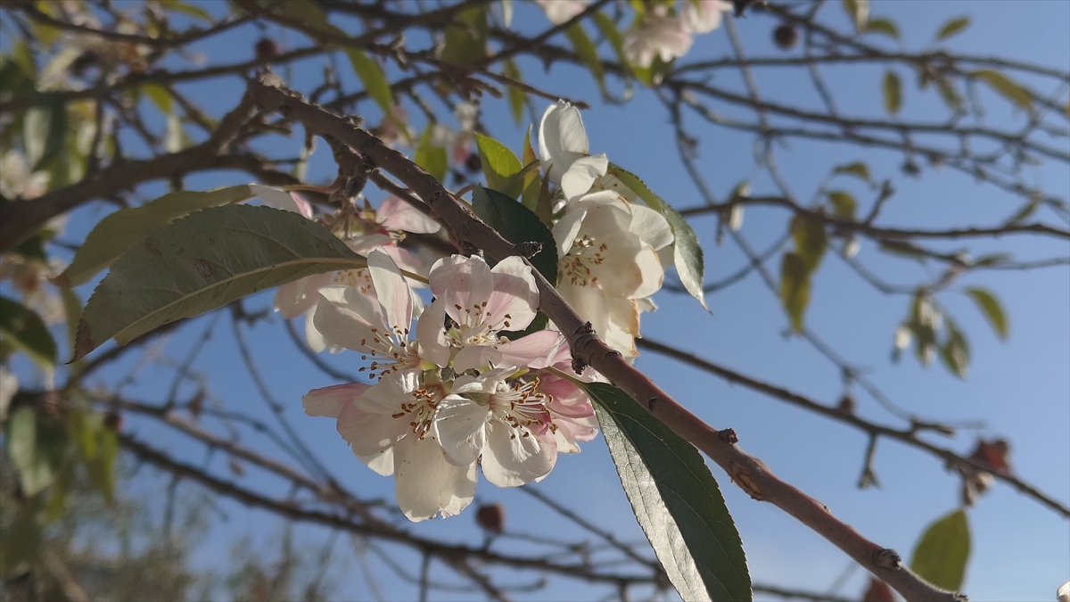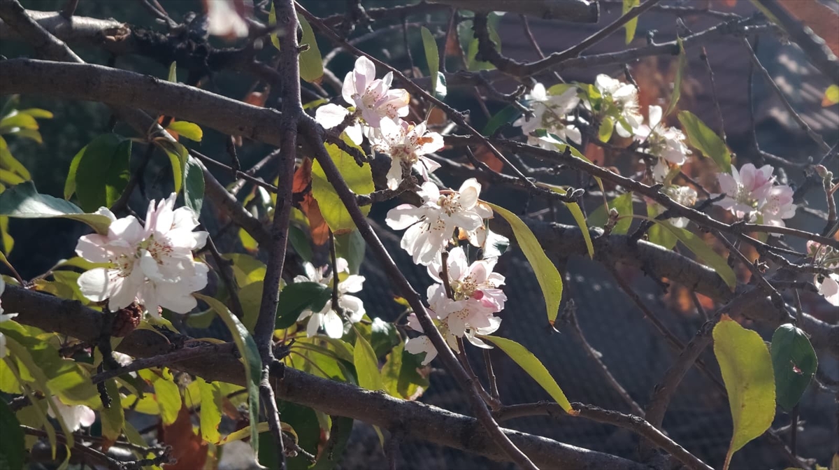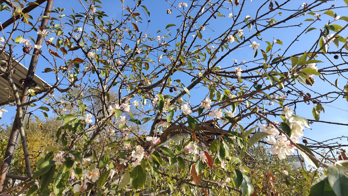 Sonbaharda hava sıcaklıklarının mevsim normallerinin üzerinde seyretmesiyle Alaattin Mahallesi`nde beton bir duvarın yanında yetişen elma ağacında çiçek açtığı gözlendi.