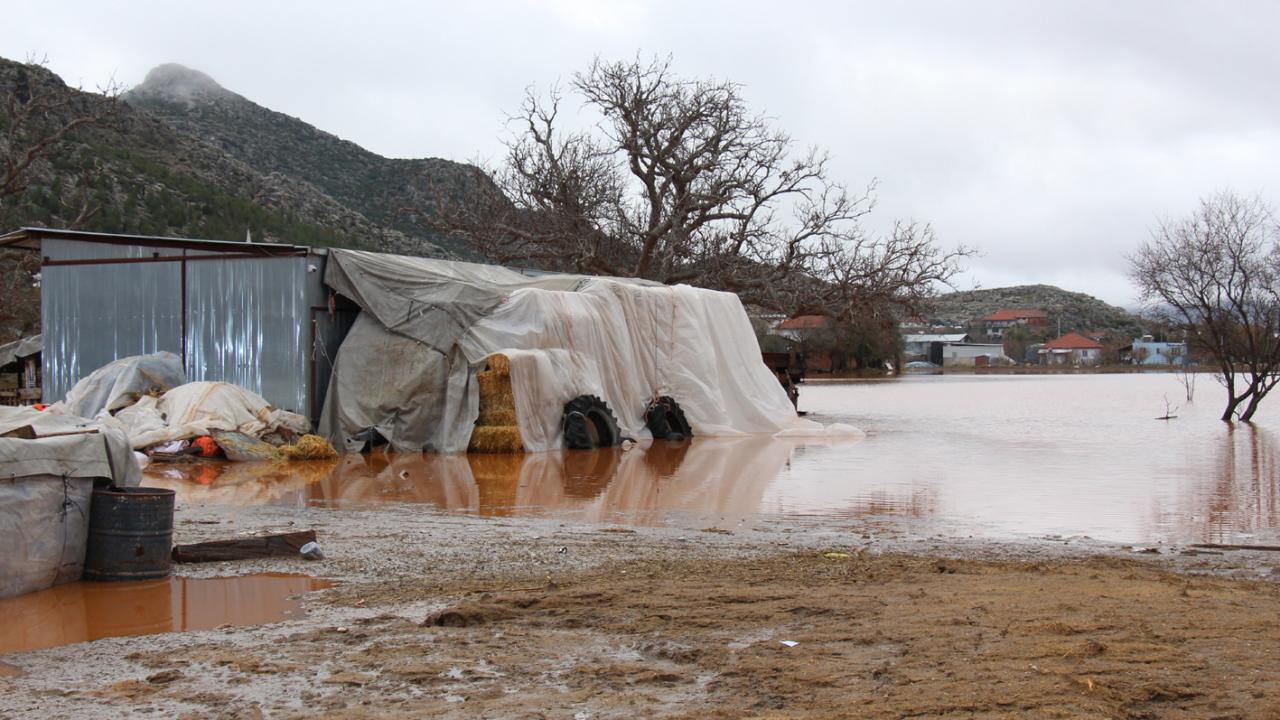 Burdur'un Bucak ilçesinde dün sağanak etkili oldu. Sular altında kalan ev, ahır ve tarım alanlarında hasar tespit çalışmasına başlandı.