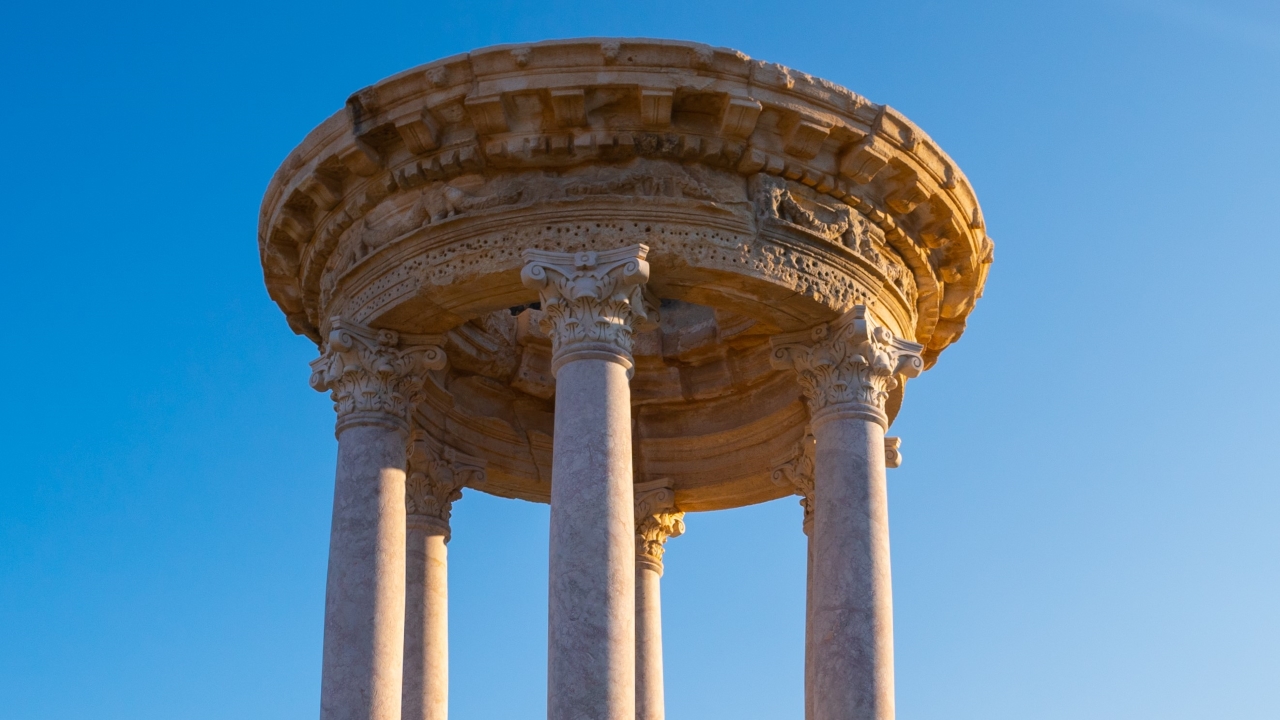 İçiçe iki yuvarlak havuz ve ortasında sütunlu bir anıttan oluşan Antik Çeşme 7 buçuk metre yüksekliğinde ve 15 metre çapında.