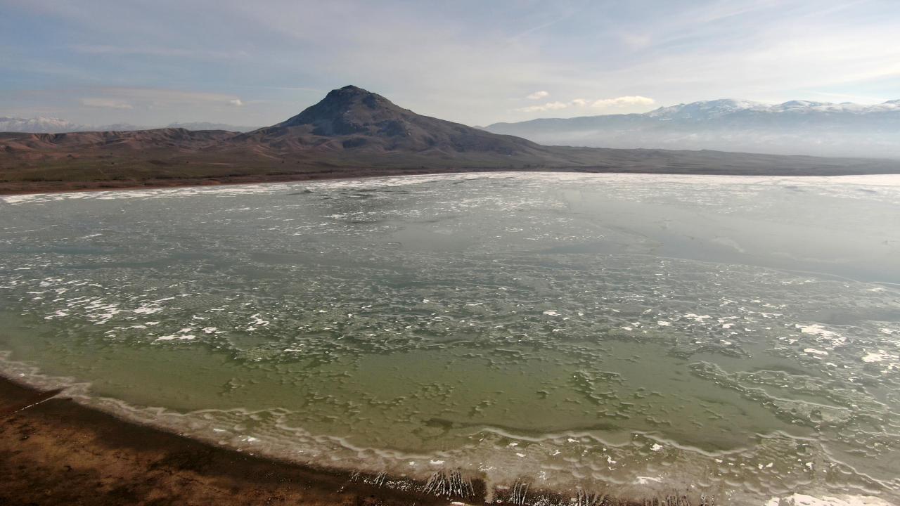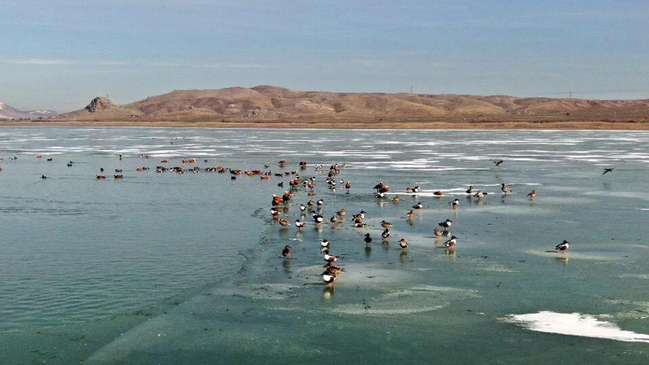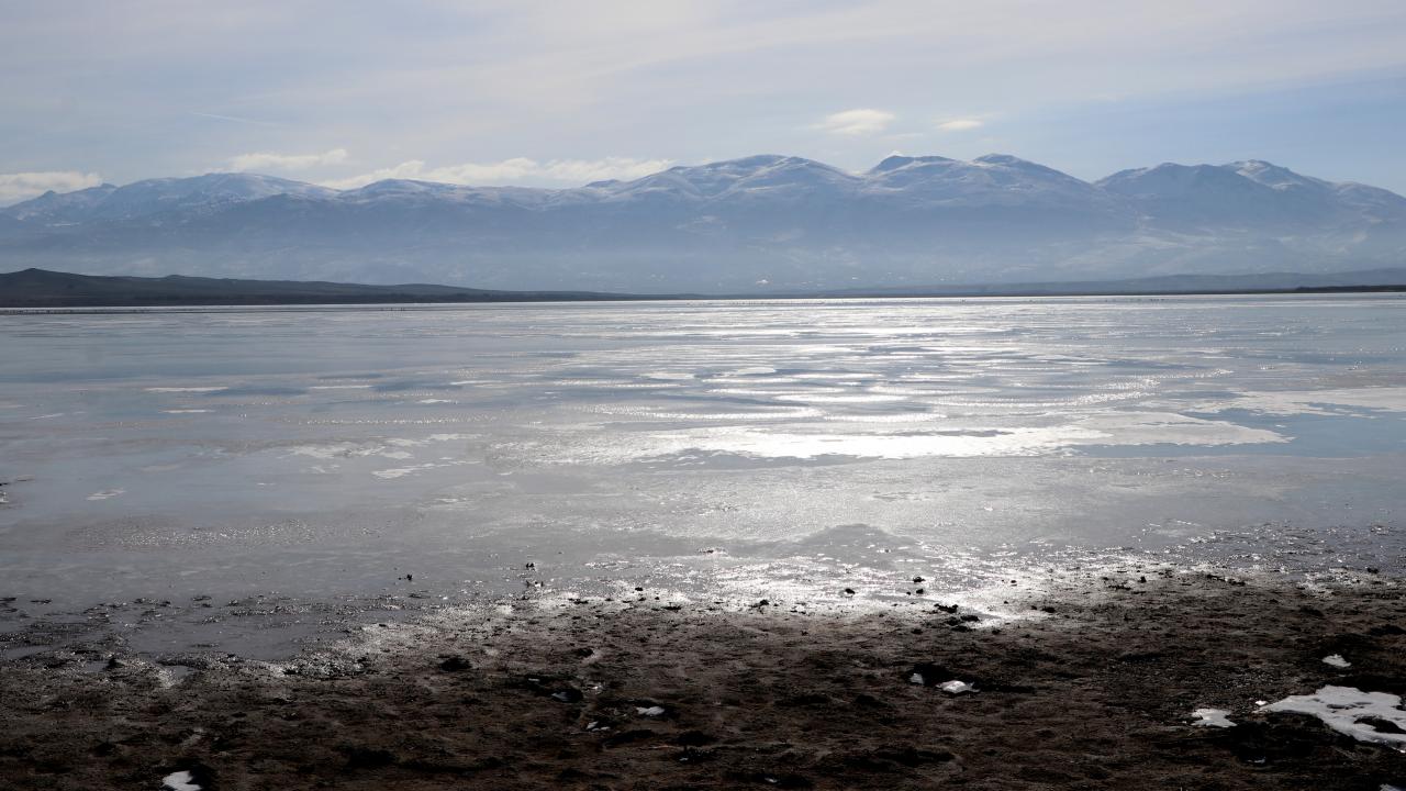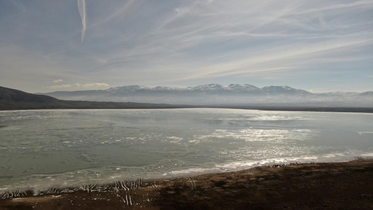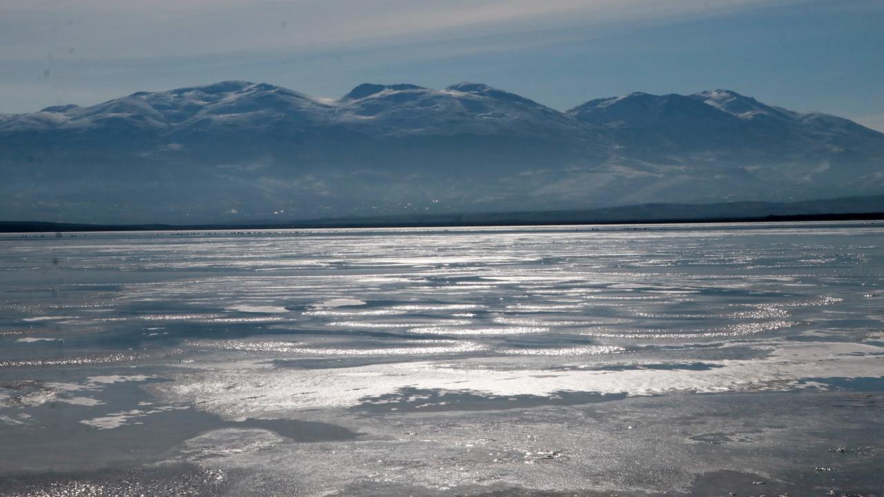 Burdur'da çok sayıda kuş türünü bünyesinde barındıran Karataş Gölü, son günlerde etkili olan soğuk hava nedeniyle dondu. Gölün büyük kısmında buz kütleleri oluştu.