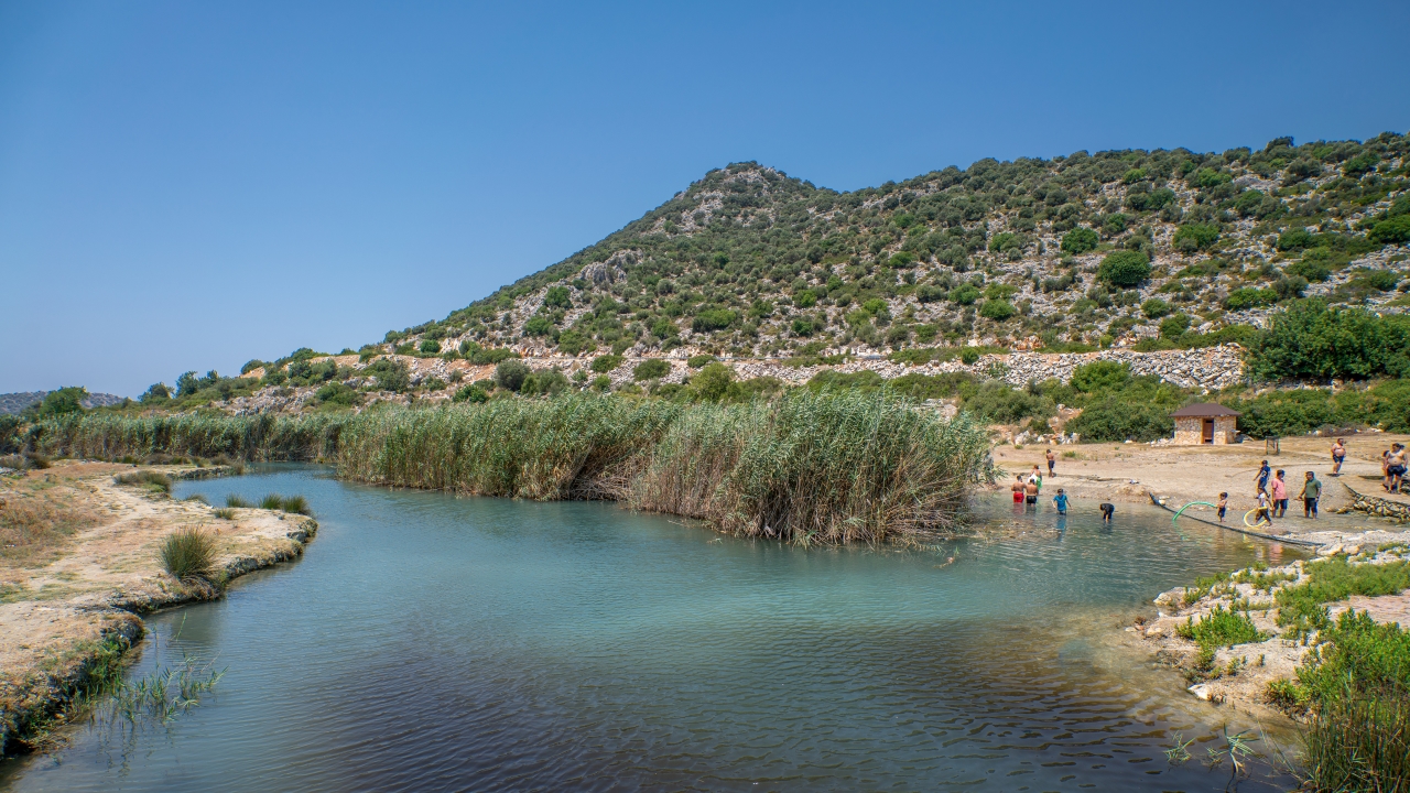 Antalya`nın Demre ilçesinde yer alan ve cilt hastalıklarına iyi geldiğine inanılan kükürtlü suyun yaz kış sıcaklığı 12-13 derece.