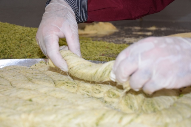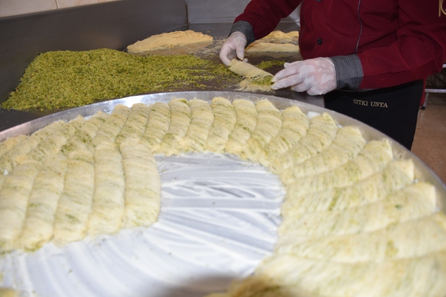 Diyarbakır'da bayramların vazgeçilmez tatlısı burma kadayıf siparişlerini yetiştirmeye çalışan ustalar, fazla mesai yapıyor.