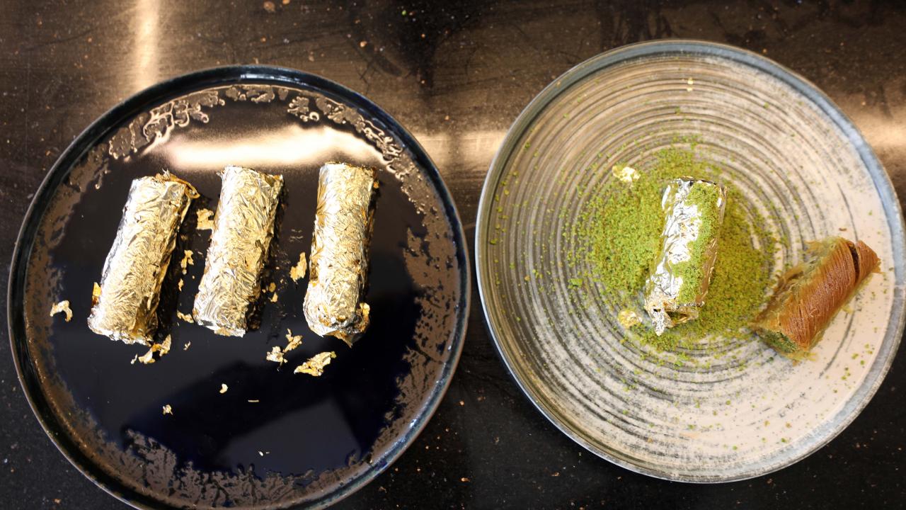 Gaziantep'te yaşayan Coşkun Yaycı, fıstık ve kaymaklı olarak yaptığı burma kadayıfı farklı bir tat ortaya koymak için altınla kapladı. Helal gıda sertifikalı, yenilebilir altın ile kaplanan burma kadayıf, vatandaşlardan ilgi gördü.