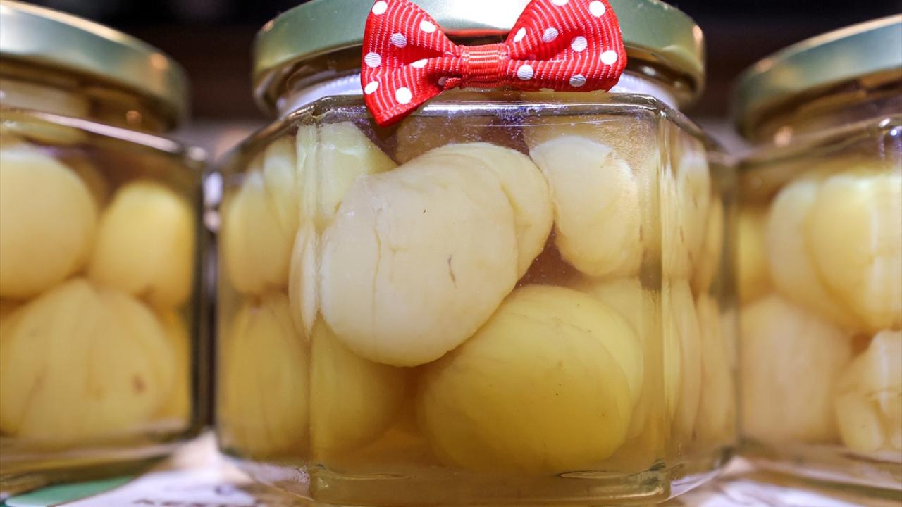Bebek gibi kundaklara sarılan, özenle pişirilen Bursa kestane şekeri, kavanozlarda ya da hediyelik paketlerde satışa sunuluyor.