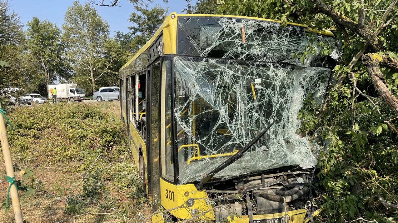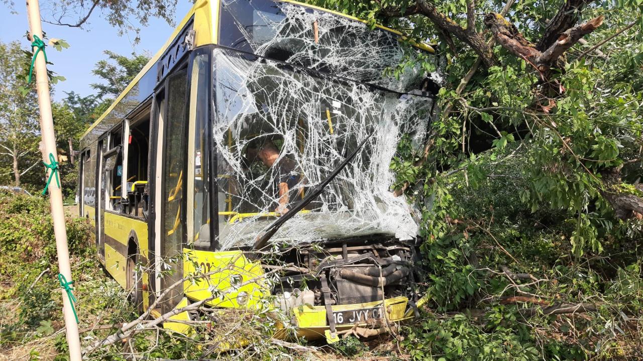 Bursa'da belediye otobüsü, arıza nedeniyle yol kenarında duran kamyonete çarparak şarampole devrildi. Meydana gelen kazada otobüste bulunan 21 kişi yaralandı.