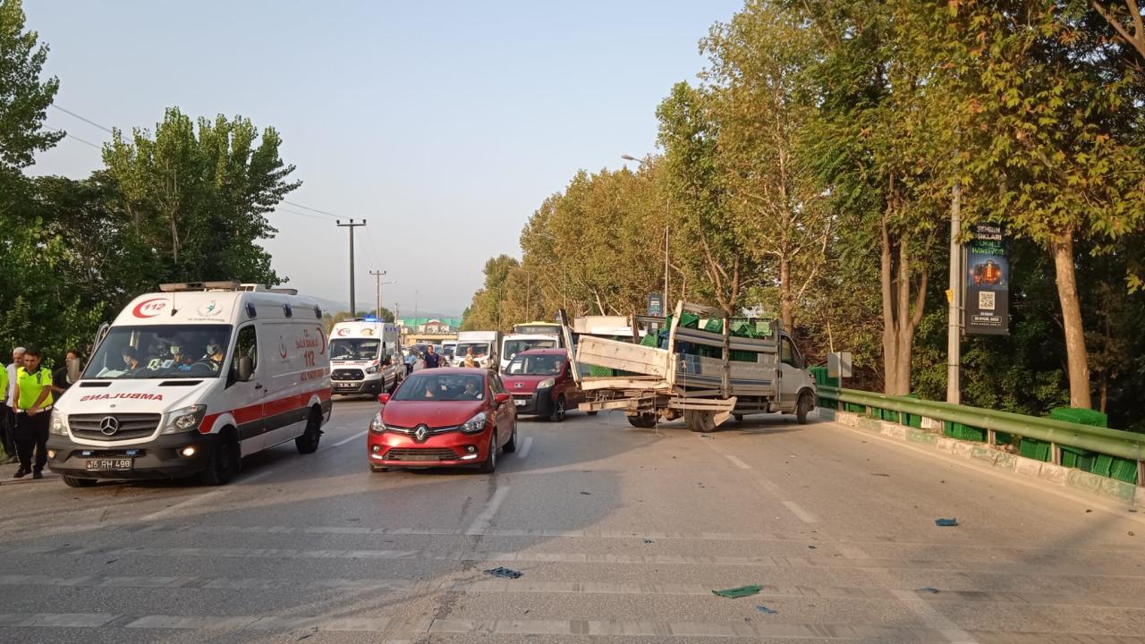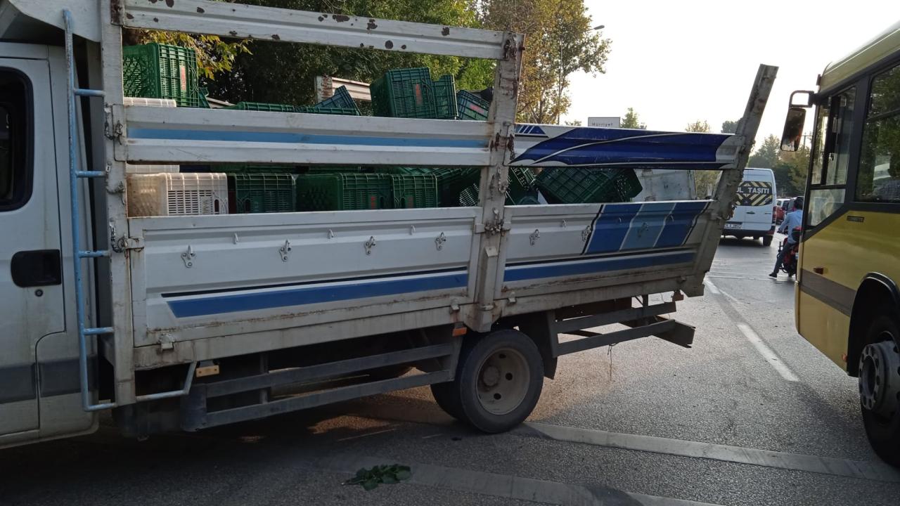 O sırada arkadan gelen ve sürücüsünün ismi öğrenilemeyen belediye otobüsü, kamyonete çarptıktan sonra yol kenarındaki bahçeye savruldu.