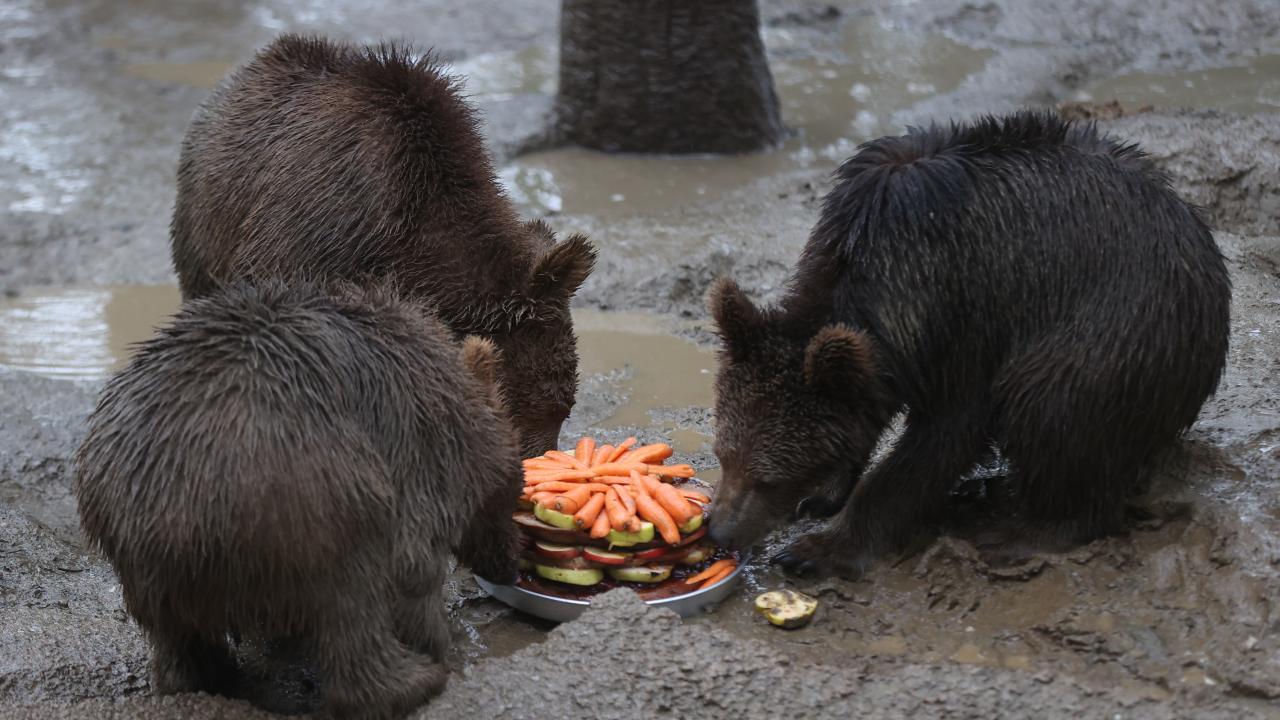 Bursa'da birinci yaşına giren ayıların doğum günü kutlandı