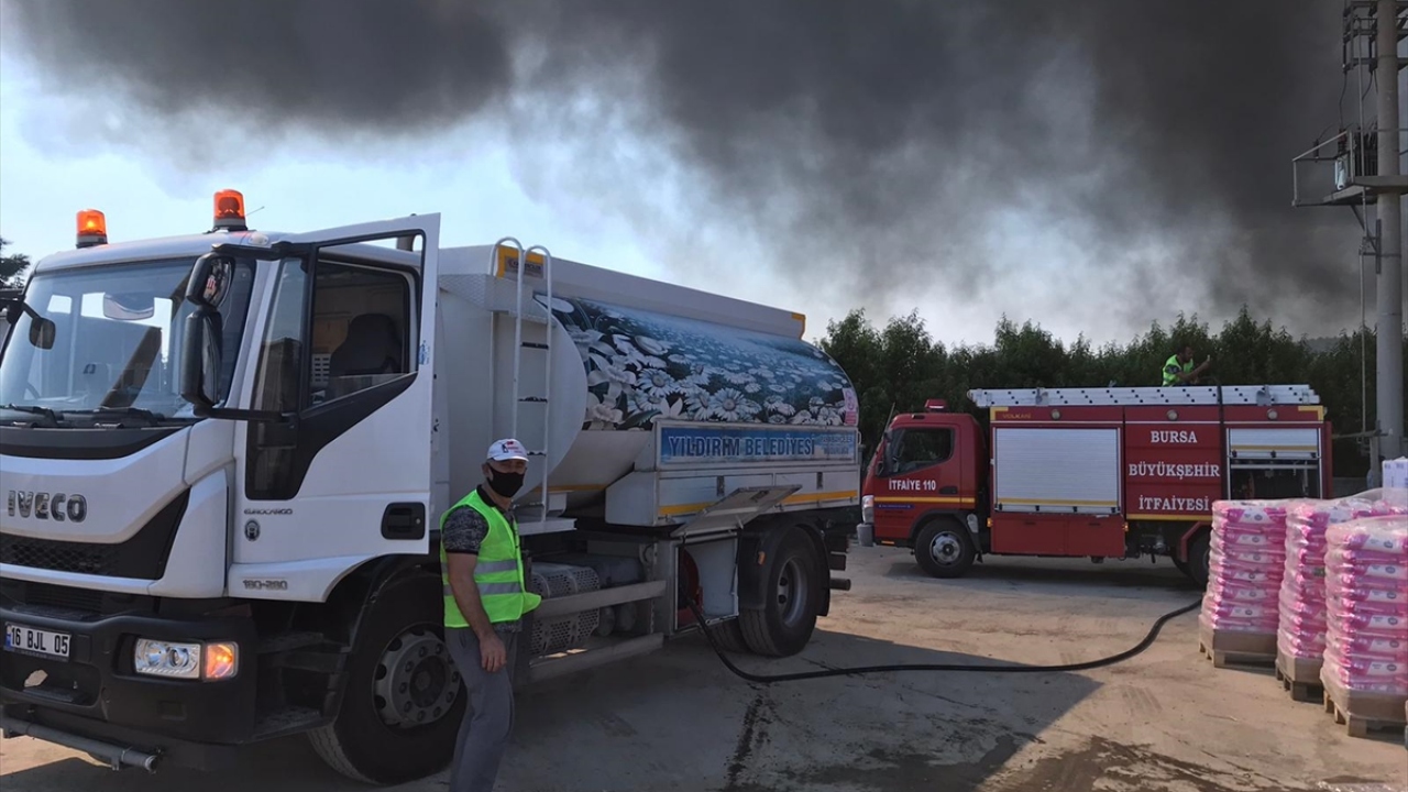 Bursa'nın Yıldırım ilçesinde 3 depoda çıkan yangının söndürülmesine çalışılıyor.
