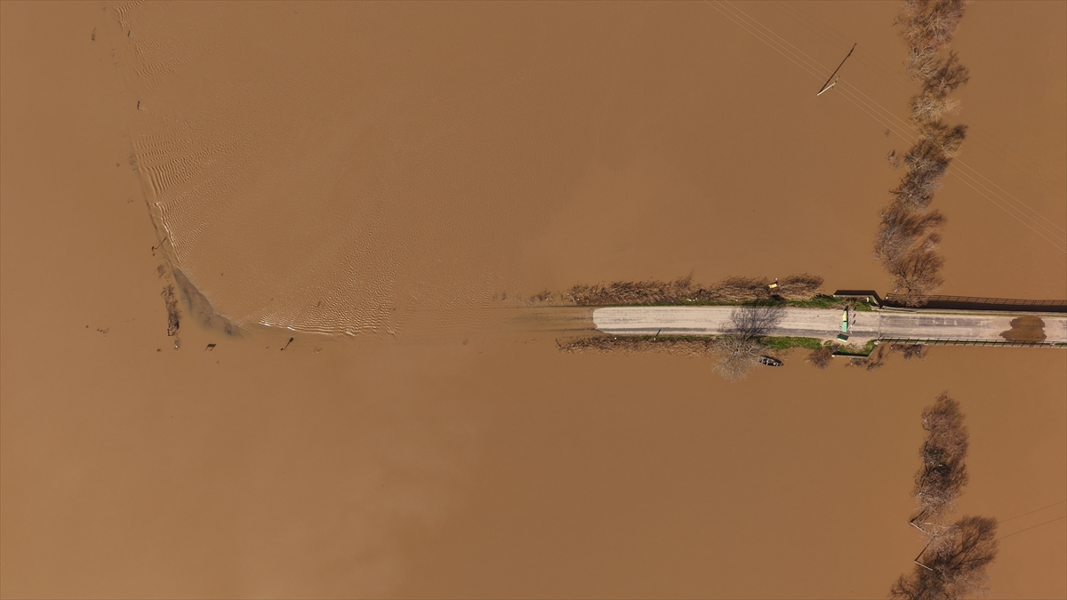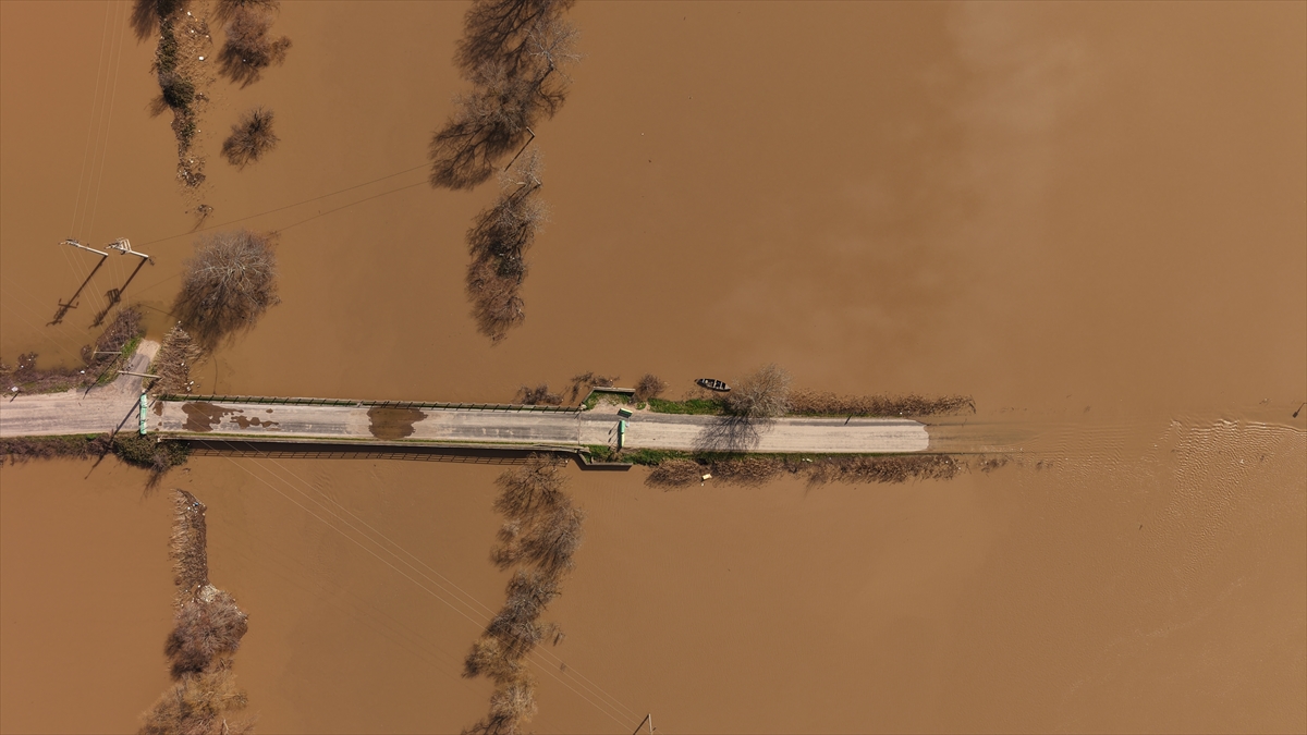 Bursa'nın Karacabey ilçesinde etkili olan yağmurun ardından debisi yükselen Çapraz Çayı'nın taşması nedeniyle Harmanlı kara yolu ile Harmanlı Köprüsü'nde ulaşım sağlanamıyor.