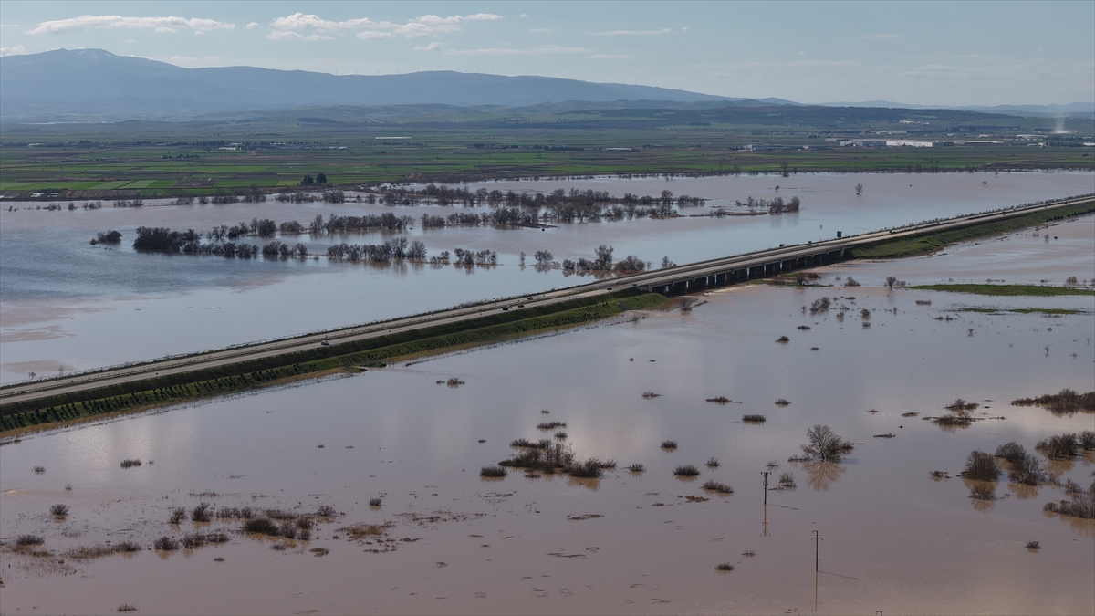 Tarım arazilerine zarar veren suyun, Karacabey mevkisindeki İstanbul-İzmir Otoyolu`na kadar ilerlediği görüldü.