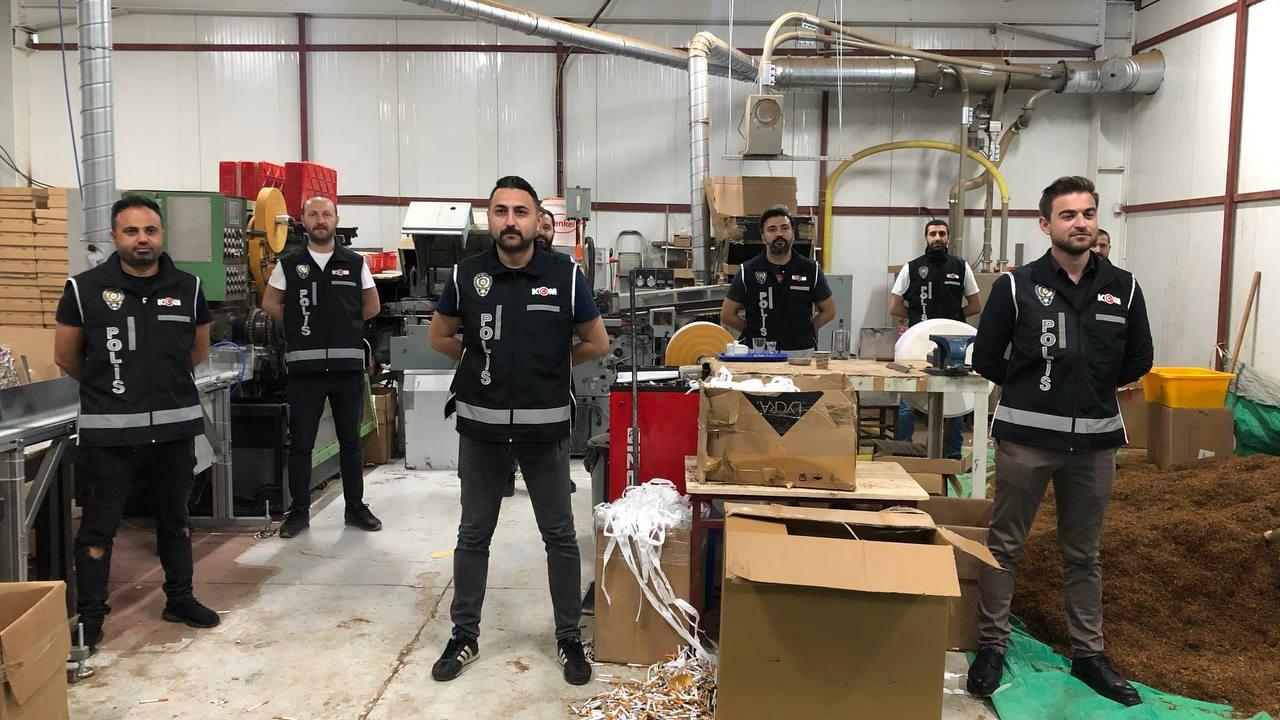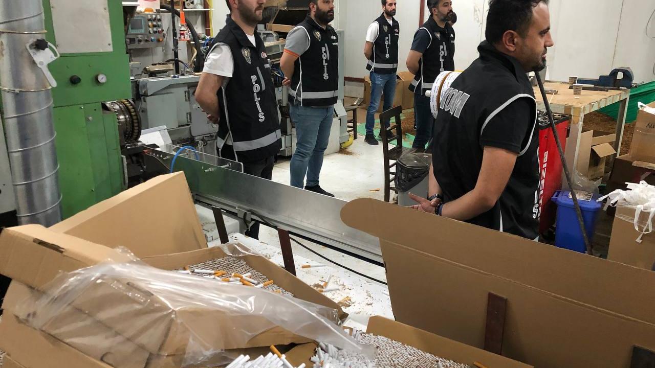 Yapılan aramada ise, 50 milyon adet sarılmış sigara, 6 ton 950 kilo tütün, 2 bin 485 adet boş sigara rulosu, 795 kilo tutkal, 103 palet karton ve piyasa değeri 1 milyon dolar olan 7 adet makaron doldurma makinesi ele geçirildi.