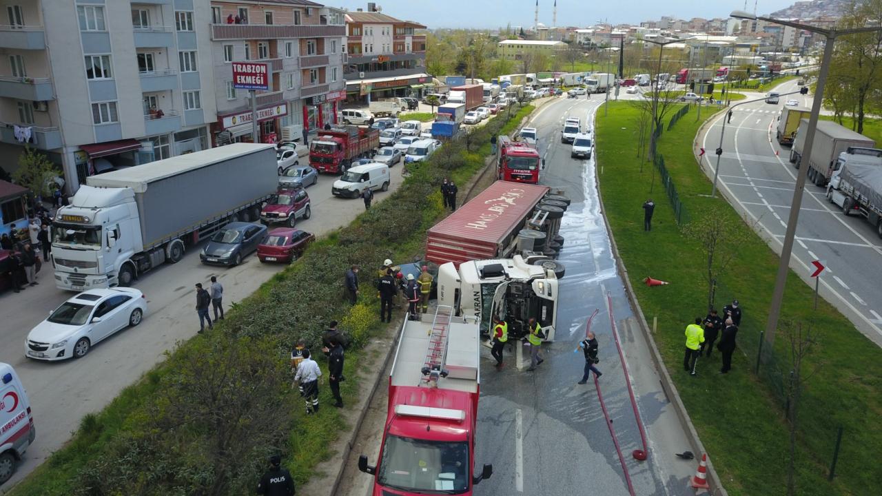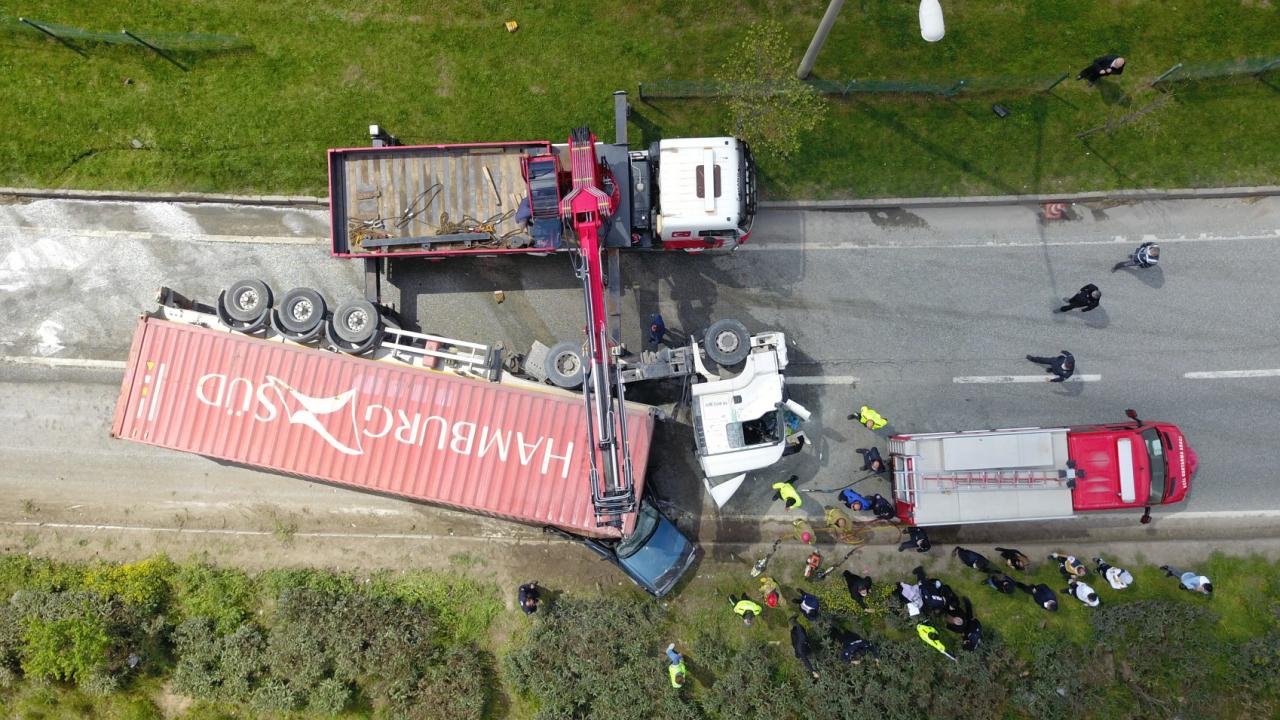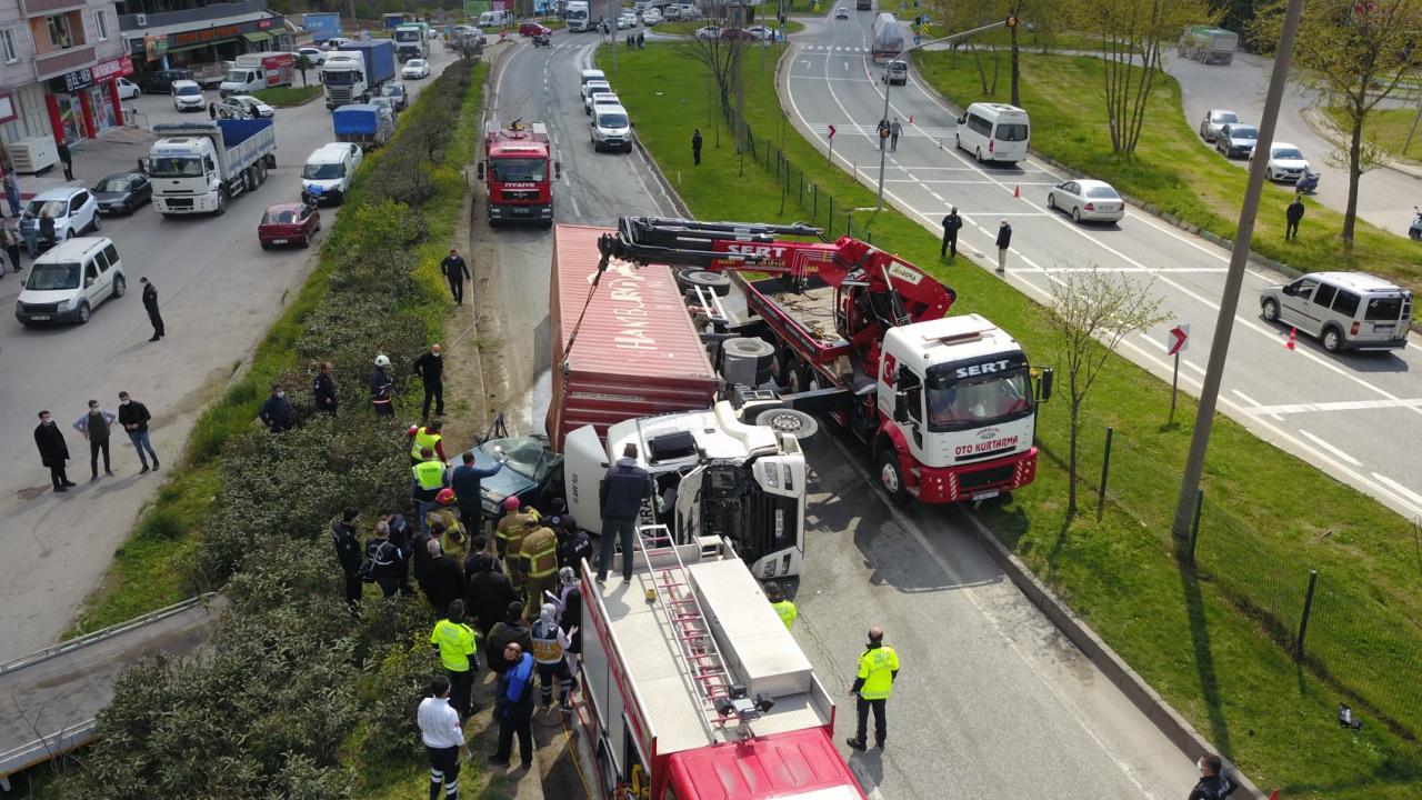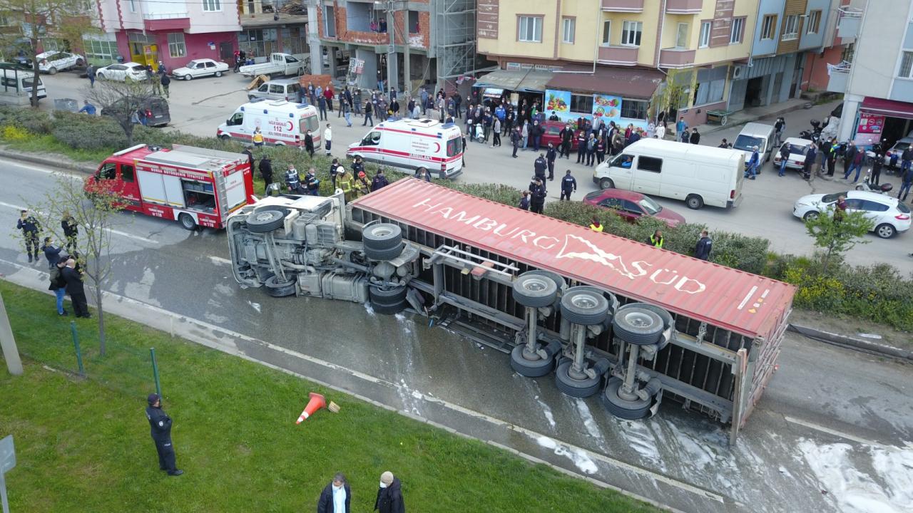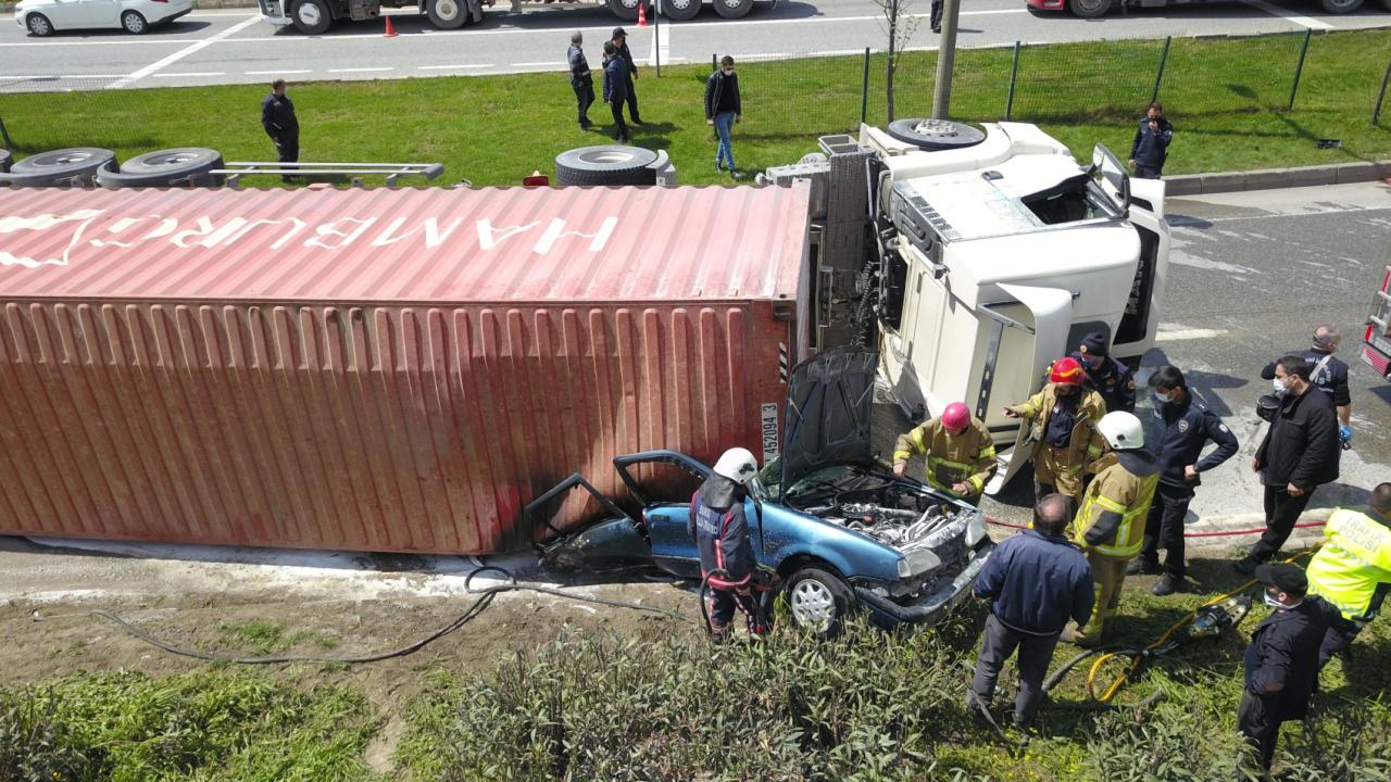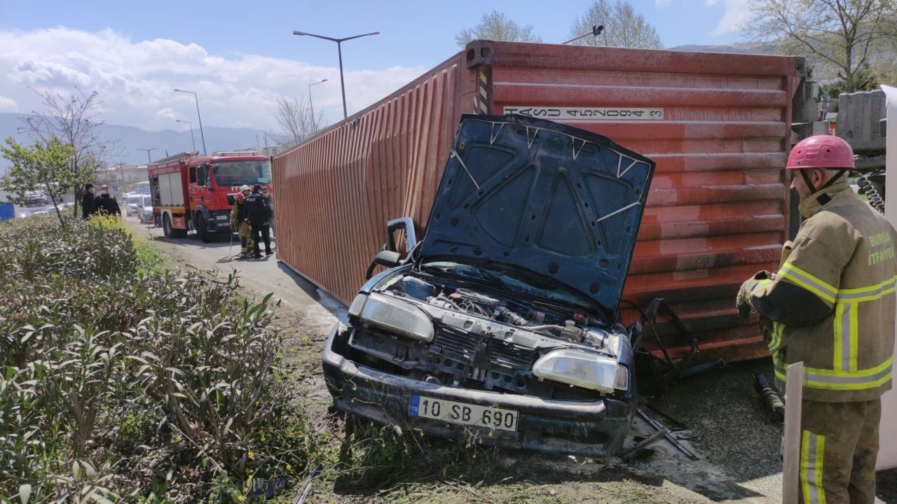 Bursa'nın Orhangazi ilçesinde kontrolden çıkan tır, aynı yönde seyir eden otomobilin üzerine devrildi. Tırın altında kalan otomobilin alev alması sonucu sürücü hayatını kaybetti. Kaza sebebiyle Bursa-Yalova karayolu bir süreliğine ulaşıma kapandı.