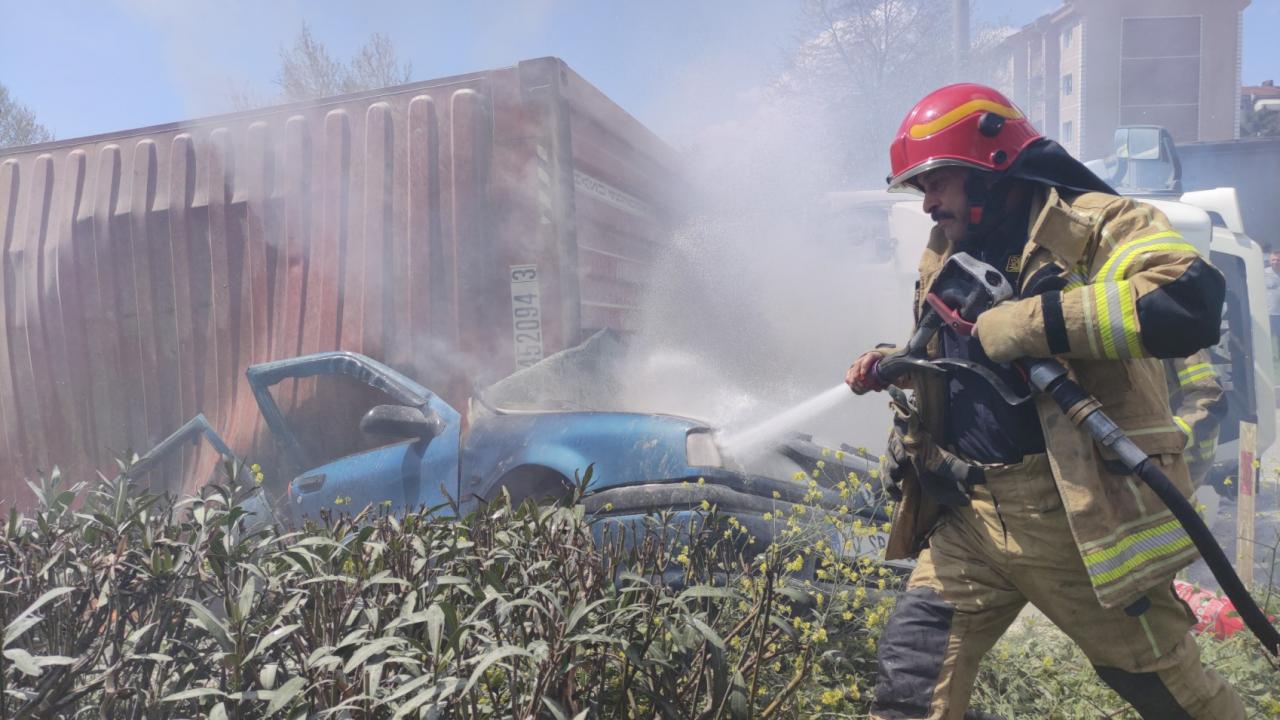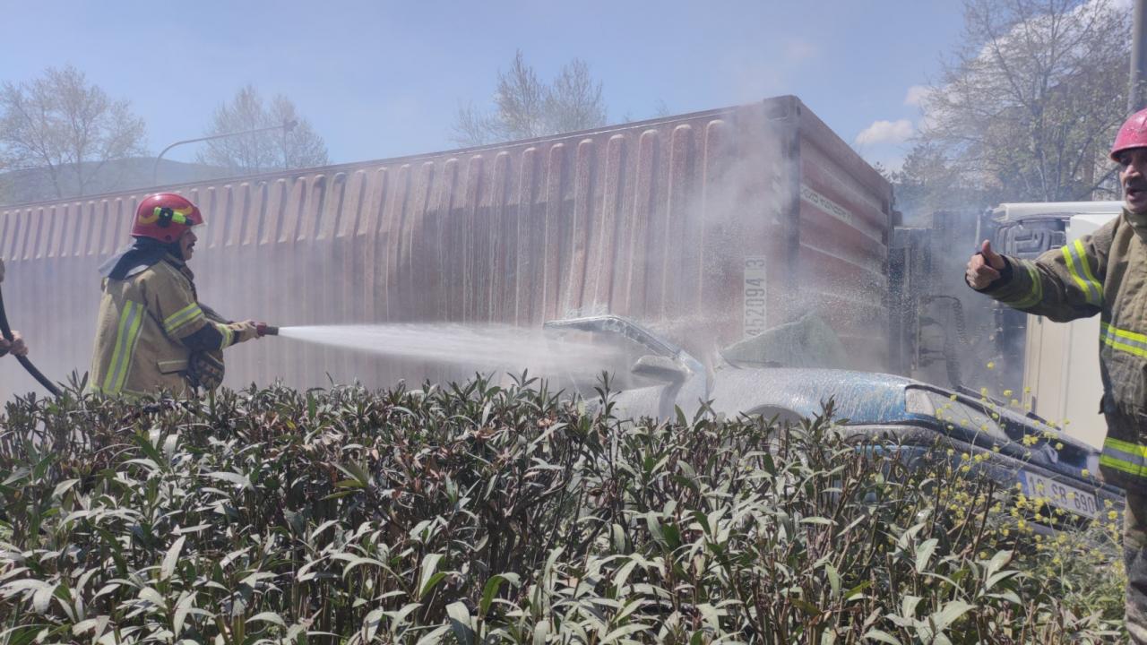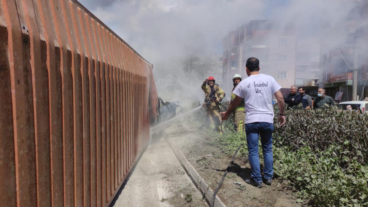Yoldan geçen sürücüler yangın söndürme tüpleriyle ilk müdahaleyi yaparak durumu itfaiye ve sağlık ekiplerine haber verdi.
