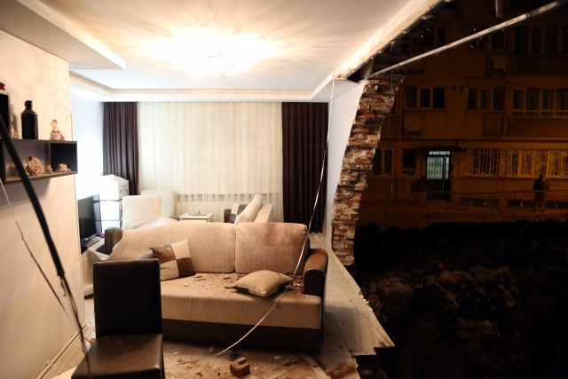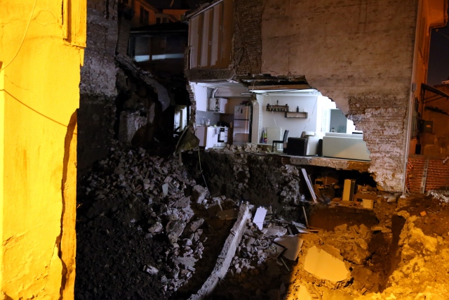 Bursa'nın merkez Osmangazi ilçesinde, temel çalışmaları yapılan bir inşaatın yanındaki iki katlı binanın yan duvarı çöktü.